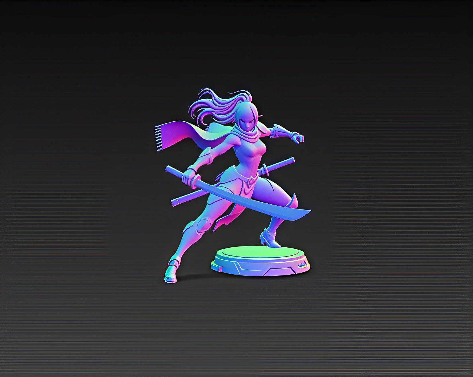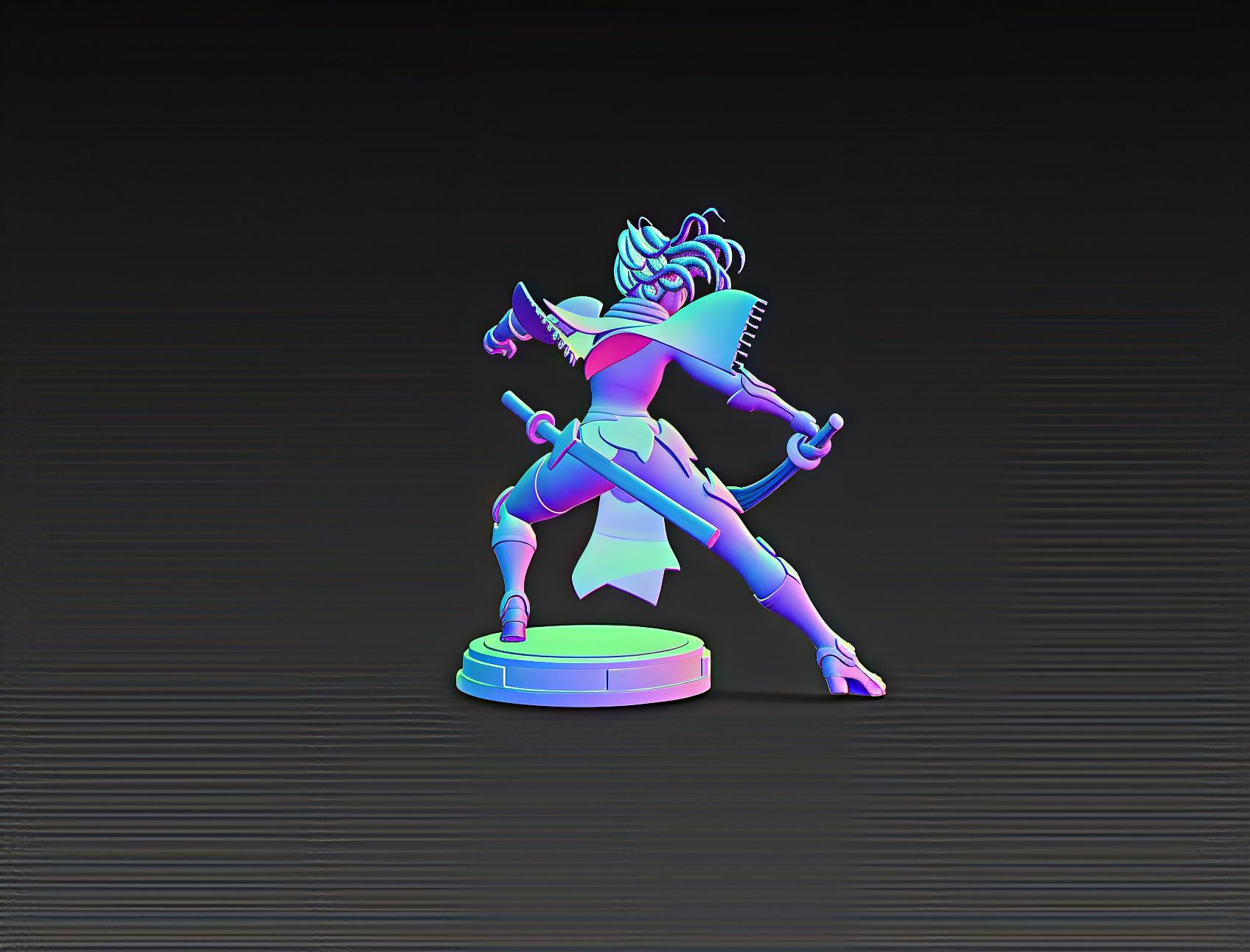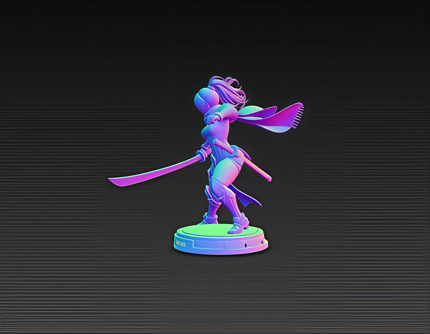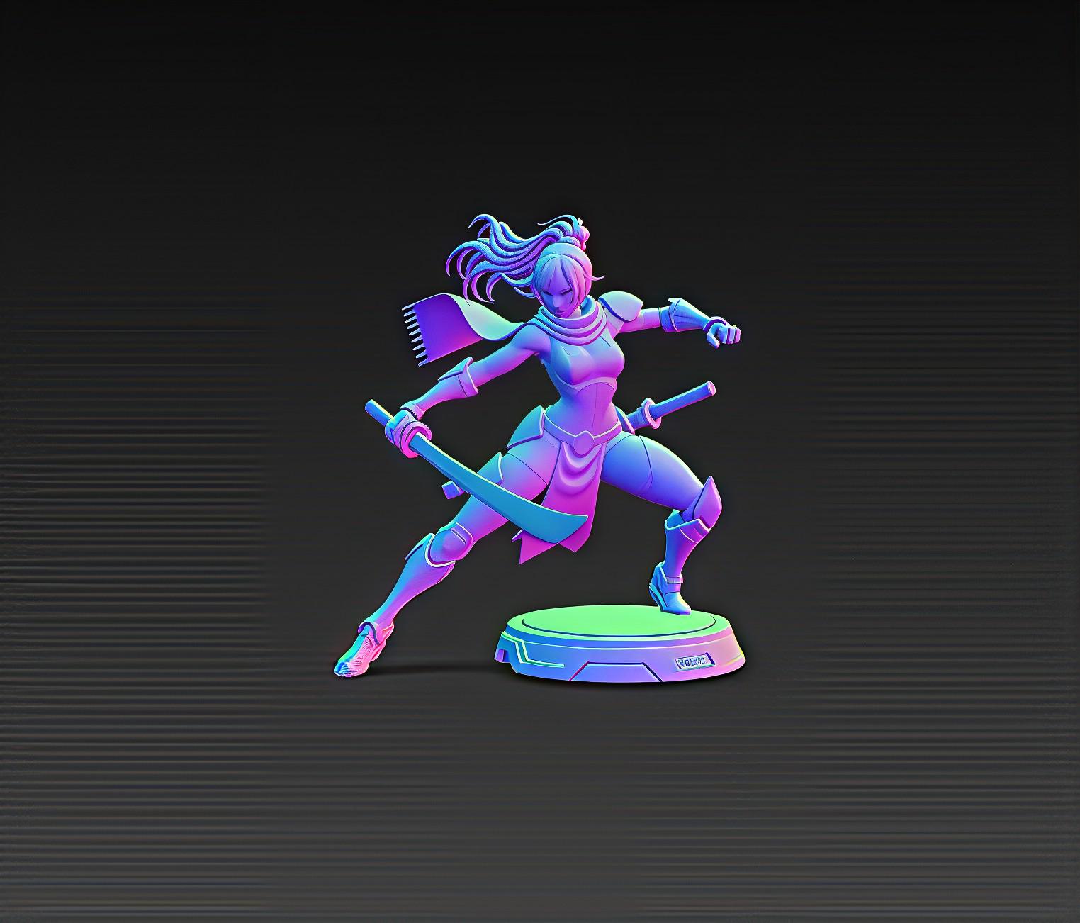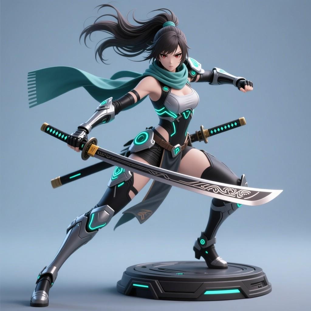 Unleash the power of the future with this Cyber Samurai Girl STL, a highly detailed 3D printable model featuring sleek armor, dual blades, and glowing neon details.