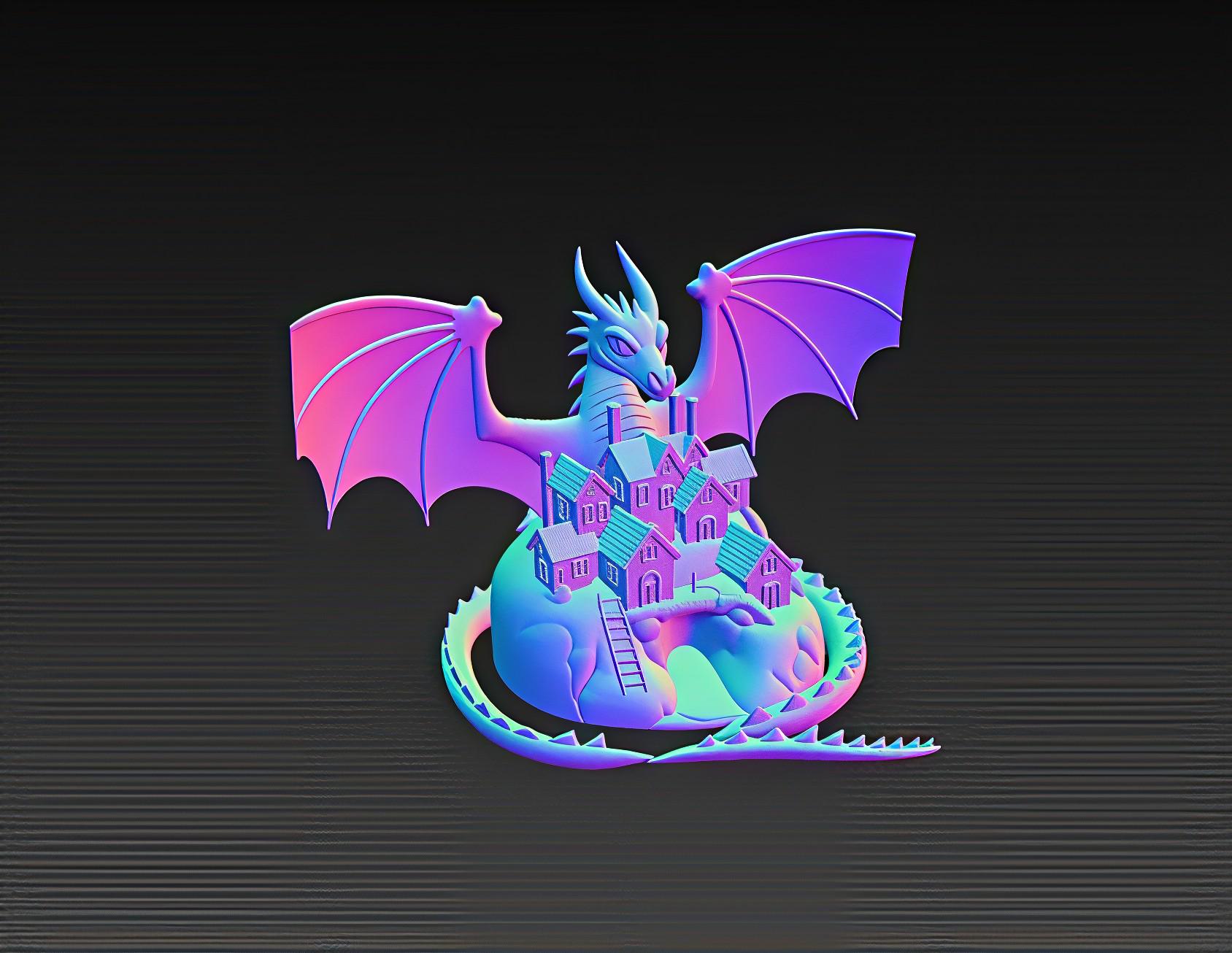 A stunning 3D printable fantasy diorama featuring a mighty dragon guarding a detailed medieval village.