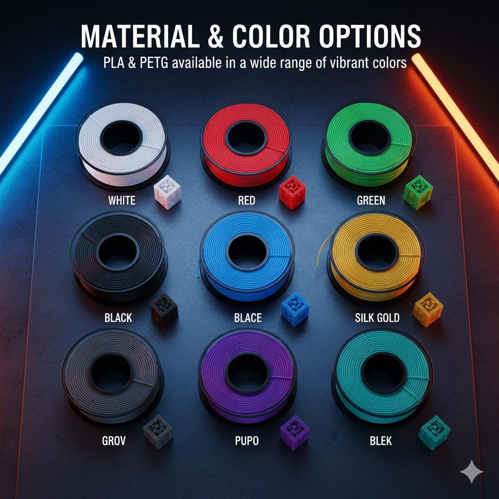 Specify Details: Let me know the desired dimensions, color, material (I use PLA and PETG as standard), and print quality (e.g., standard, high-detail).