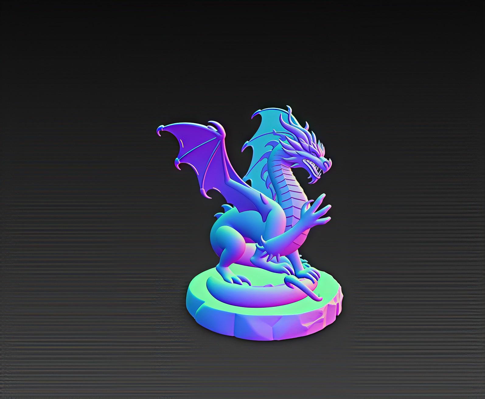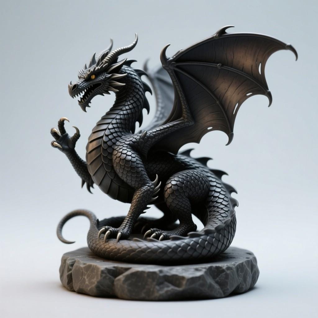 A highly detailed 3D printable STL model of a powerful black dragon perched on a stone base. Perfect for resin or FDM printing, collectible display, or fantasy diorama projects. Designed for enthusiasts of dragons, mythology, and fantasy art.