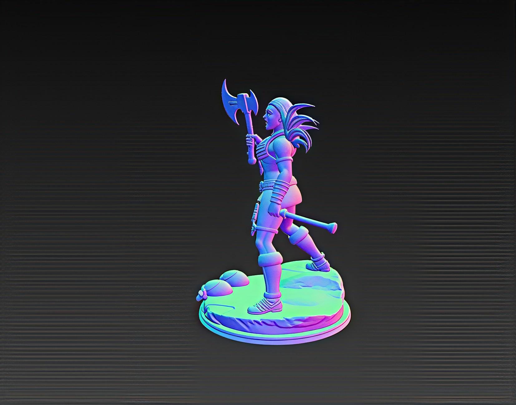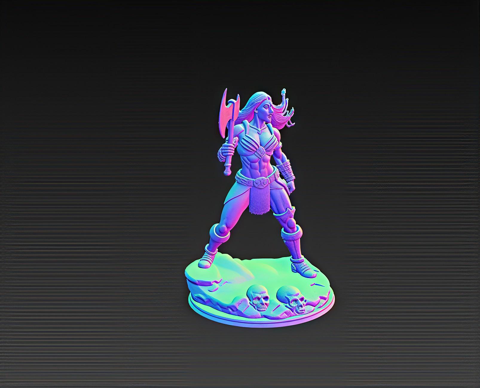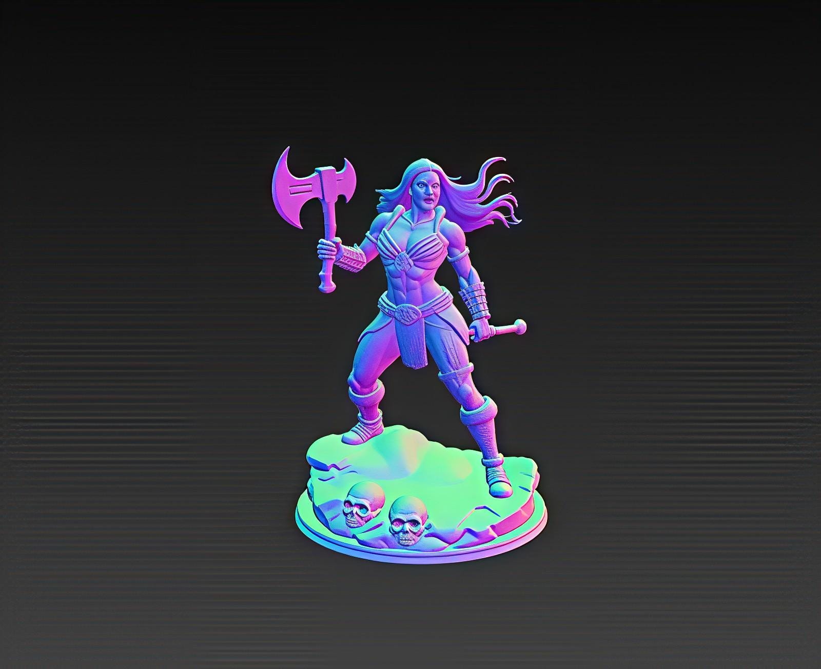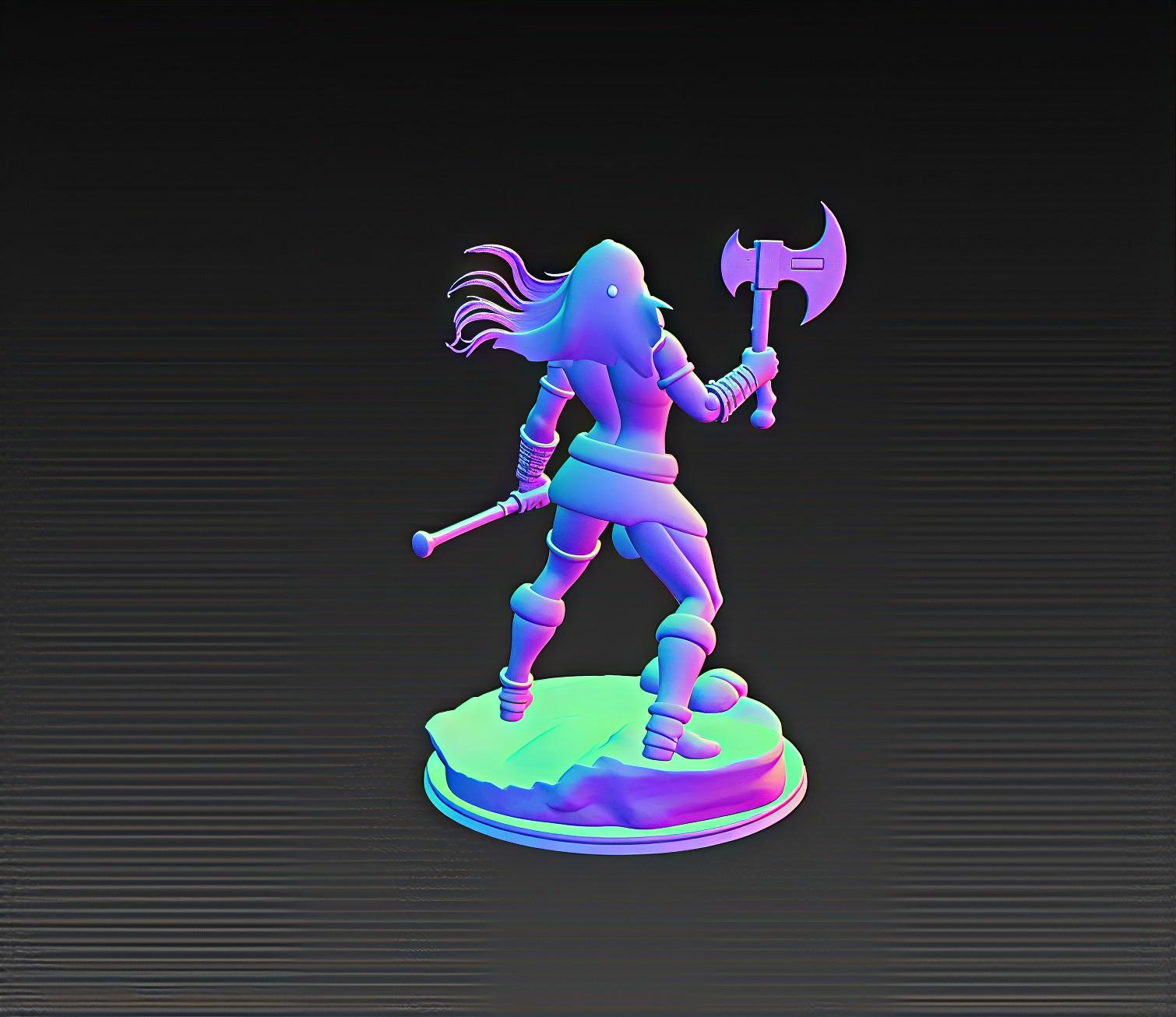 Unleash the fury of this Female Barbarian Warrior! A highly detailed STL model featuring armor, double axe, and battle stance. Perfect for fantasy collectors, 3D printing enthusiasts, and tabletop dioramas. Designed for resin or FDM printing.