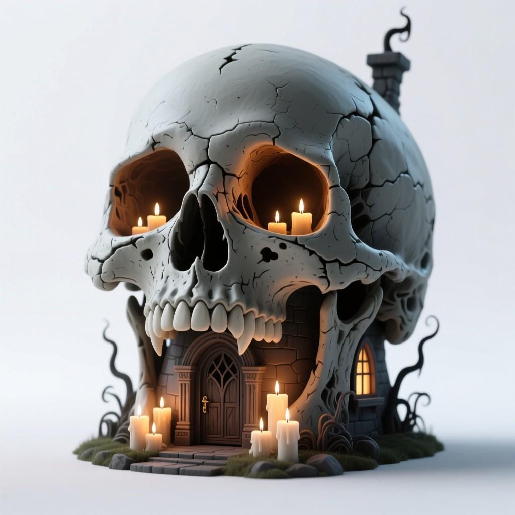 Step into the eerie glow of the Skull Candle House STL, designed by ECRAFTECH for 3D printing fans who love dark fantasy and Halloween style.