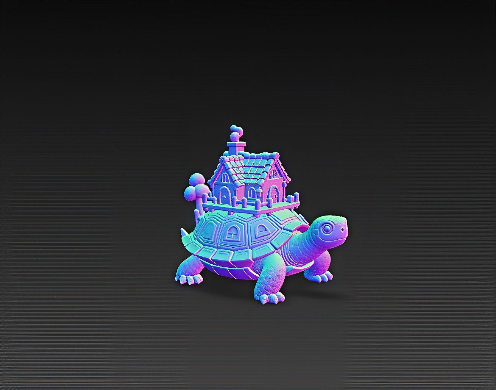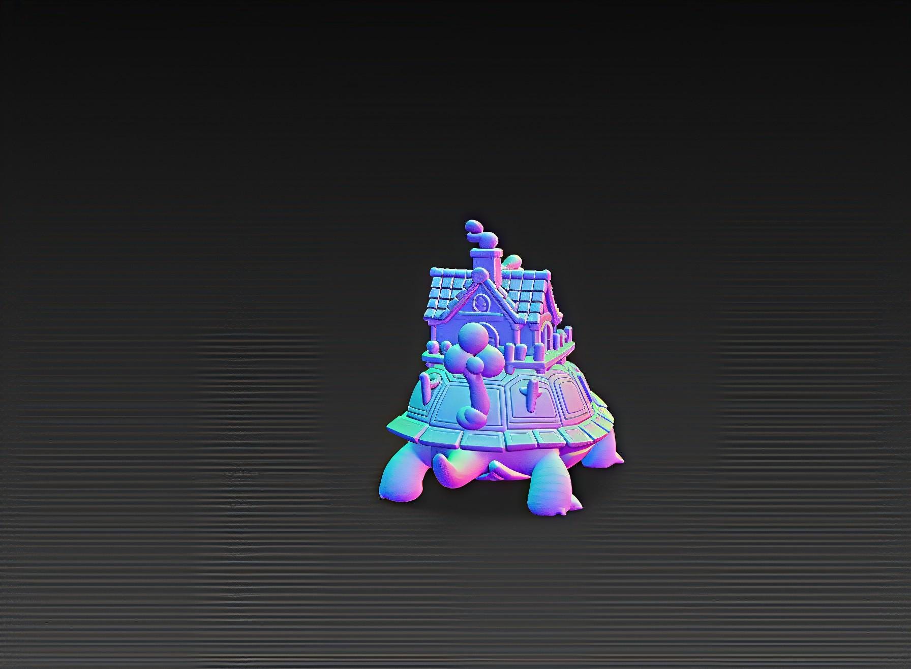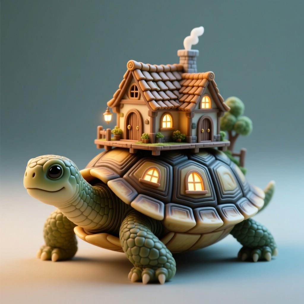 A detailed 3D printable fantasy model where a cozy cottage rests on a turtle’s back — blending nature, imagination, and craftsmanship..