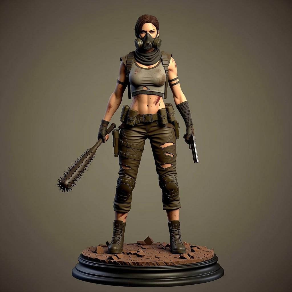 Step into the wasteland with this Post-Apocalyptic Survivor Woman STL 💀🔥