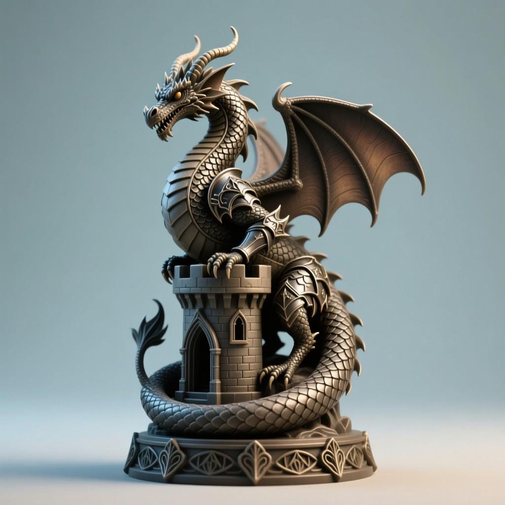 Epic dragon guarding a castle tower — perfect for fantasy lovers and collectors.