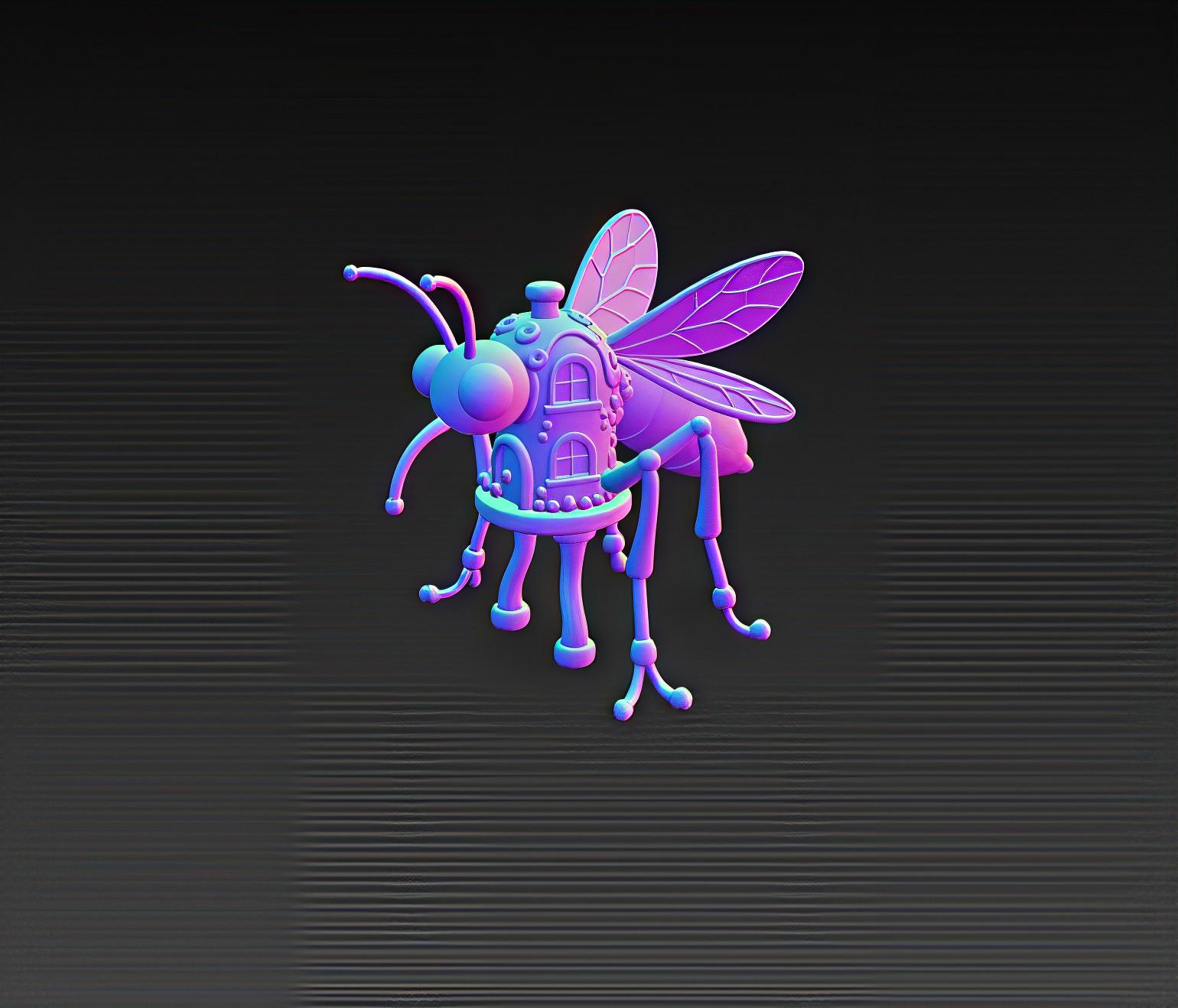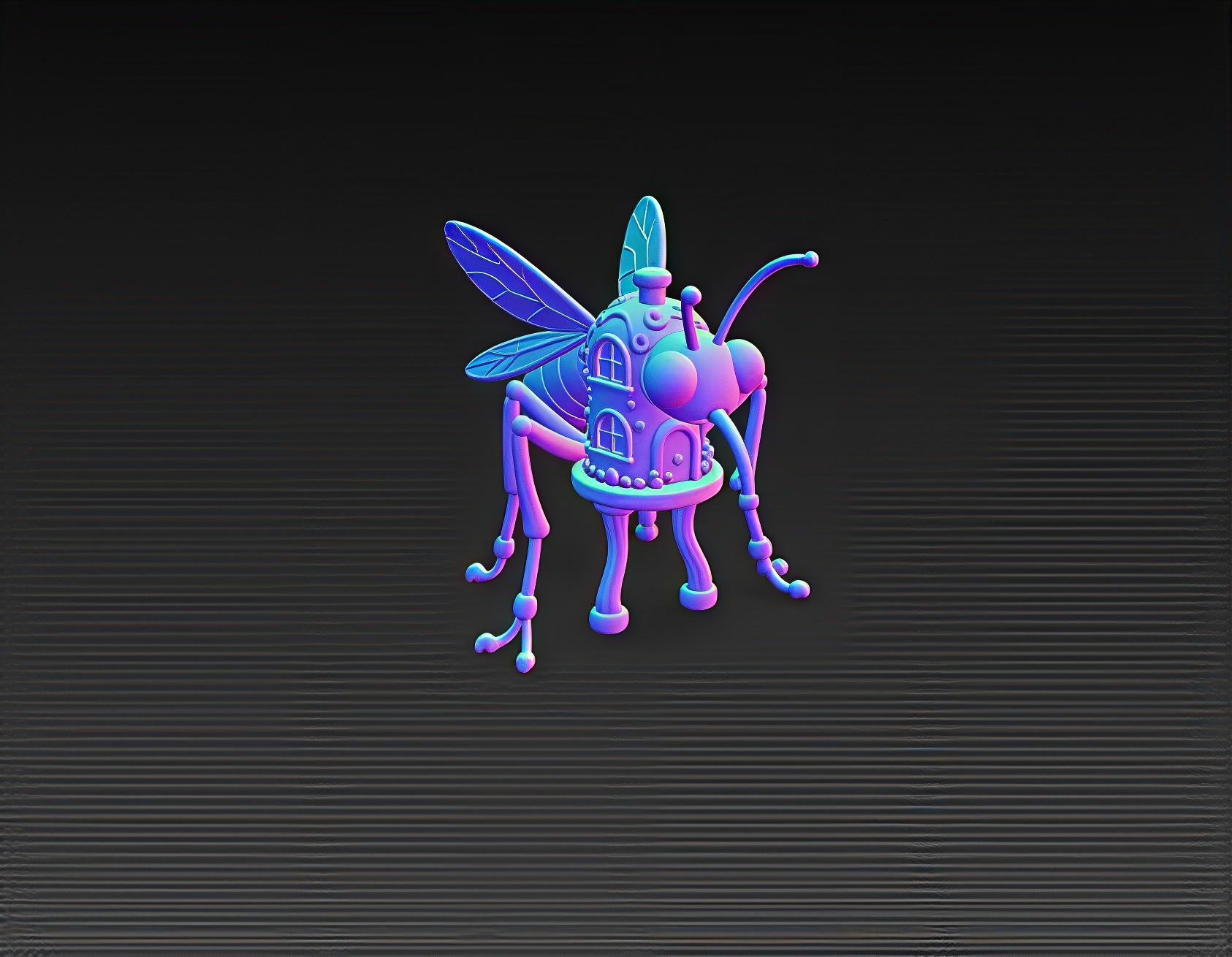 Designed for clean slicing and printing with detailed textures on the wings, home structure, and legs.