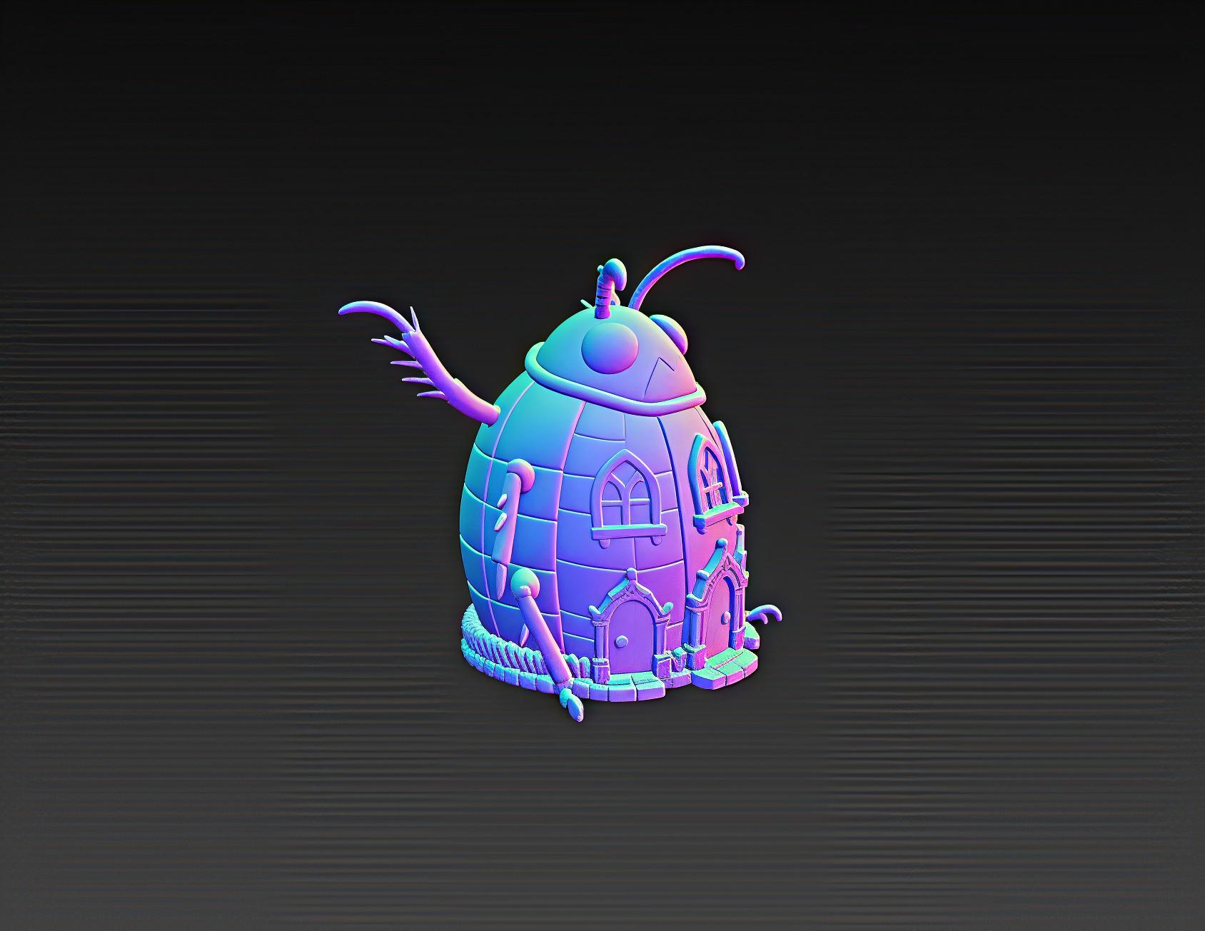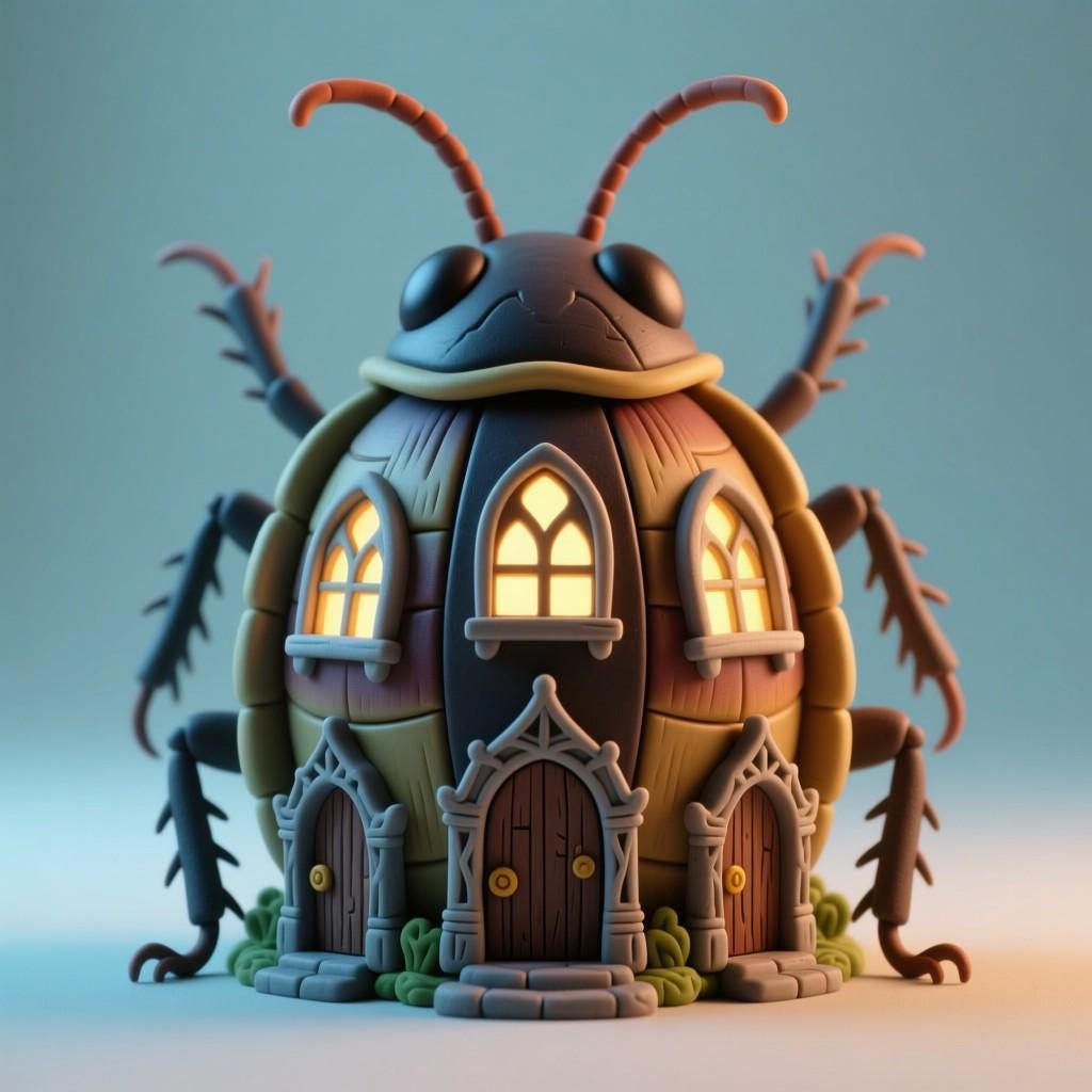 This whimsical beetle house STL blends creature design with a cozy cottage style, featuring glowing windows and detailed carved doors.