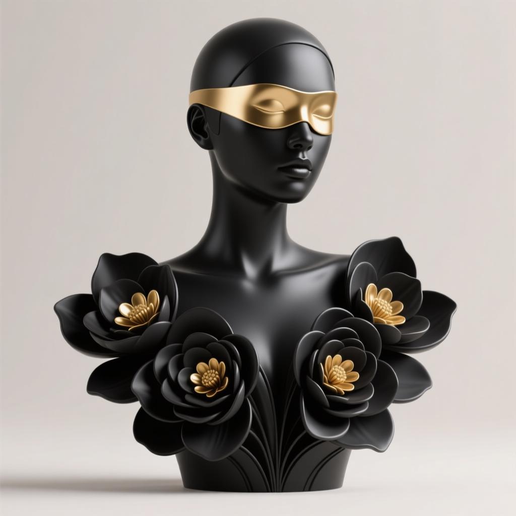 This luxury masked woman bust STL features a sleek modern design with sculpted black floral elements and refined gold accents. Created as a premium art display piece, it prints beautifully on both resin and FDM printers. Perfect for collectors, interior décor, gallery-style displays, or unique gift creations. Digital download only.