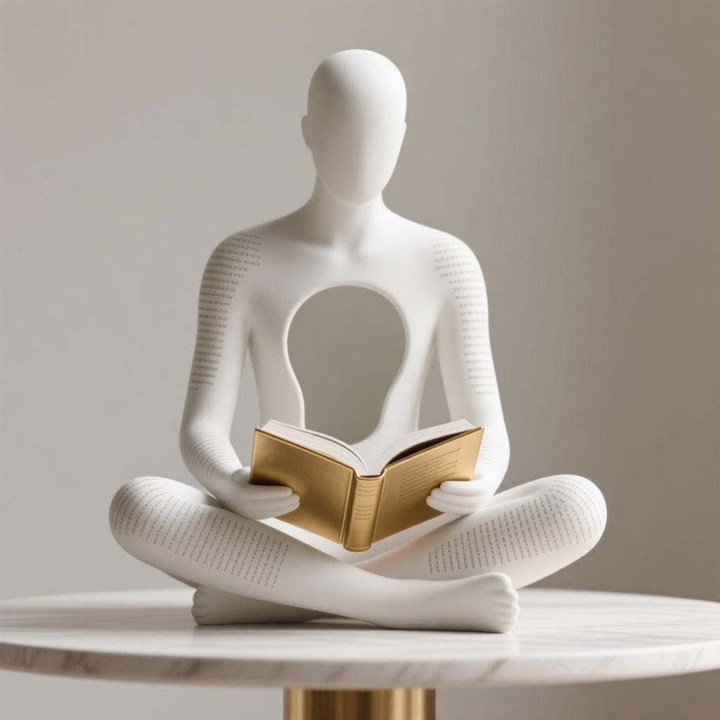 This minimal reading figure STL showcases a serene, abstract character seated cross-legged with a gold book and an open cavity symbolizing mindfulness and intellect. Designed for clean and smooth 3D printing, it works perfectly as home décor, office art, or a thoughtful gift. Digital file only.