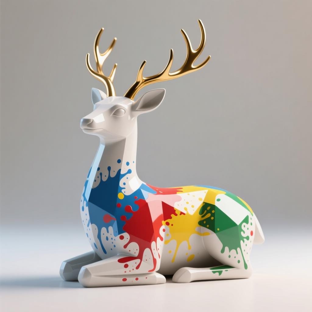 This colorful sitting deer STL features a modern reindeer sculpture with vibrant paint-splash patterns and elegant golden antlers. Designed for smooth and detailed 3D printing, it works perfectly as holiday décor, collectible art, or a unique gift for the season. Digital download only.