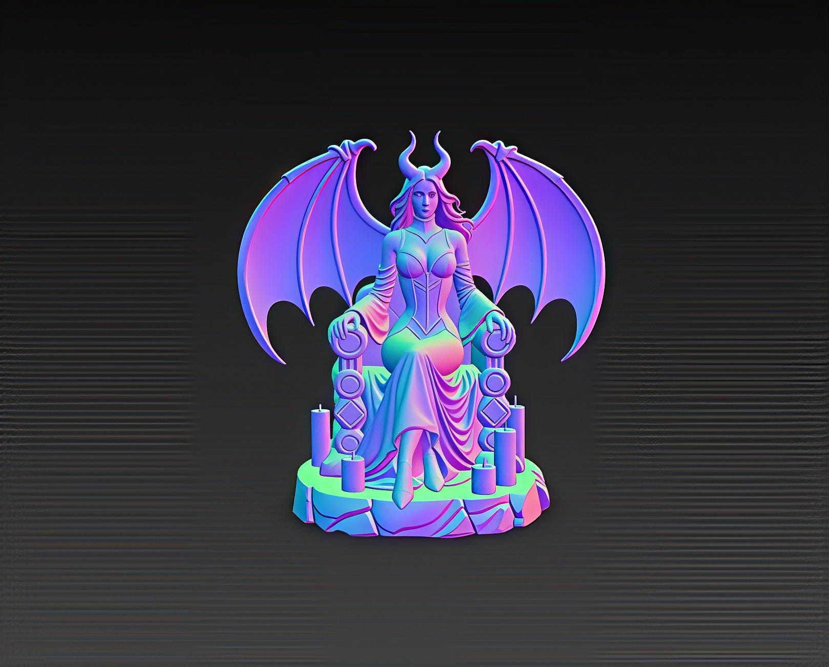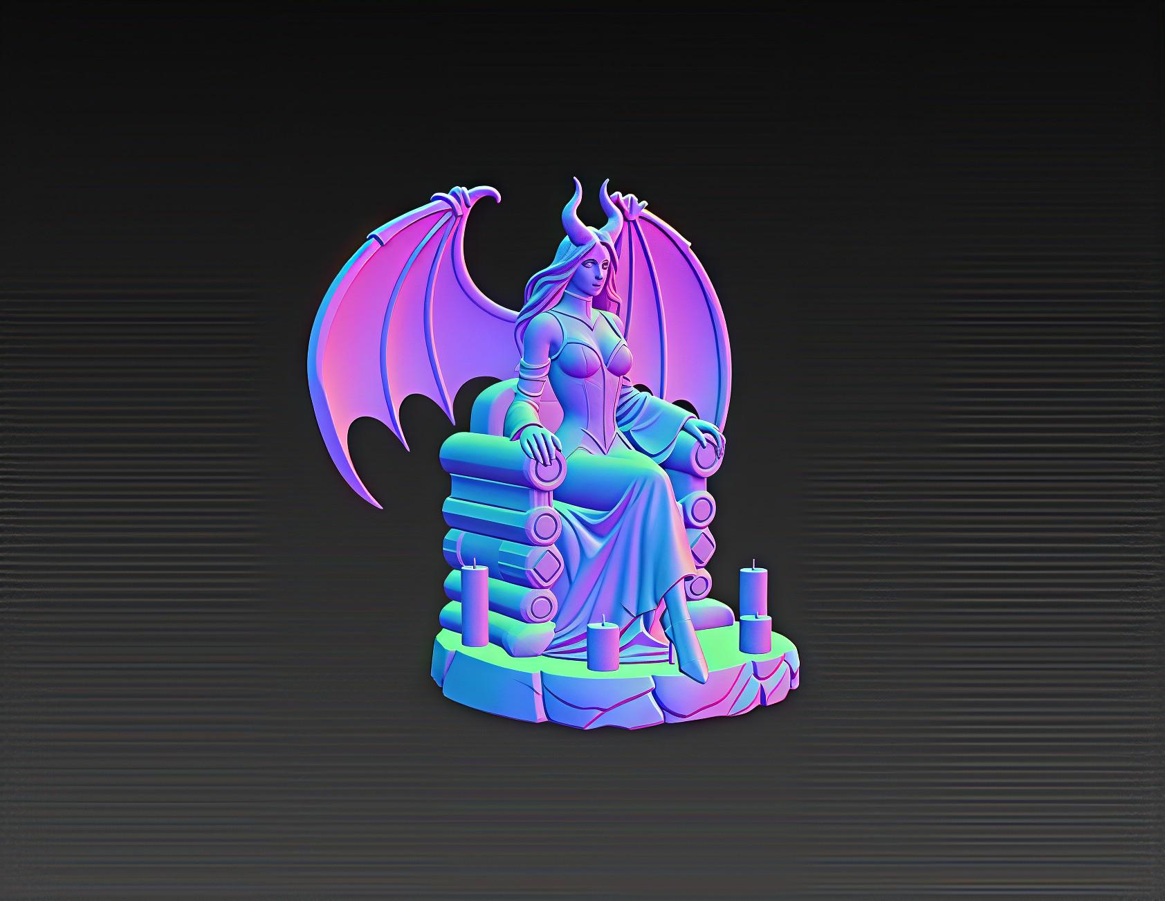 This detailed demon queen STL features elegant wings, a gothic stone throne, and dramatic candle elements. Designed for clean printing on resin or FDM machines, it creates a premium display piece for fantasy collectors and dark-themed décor. Digital download only.