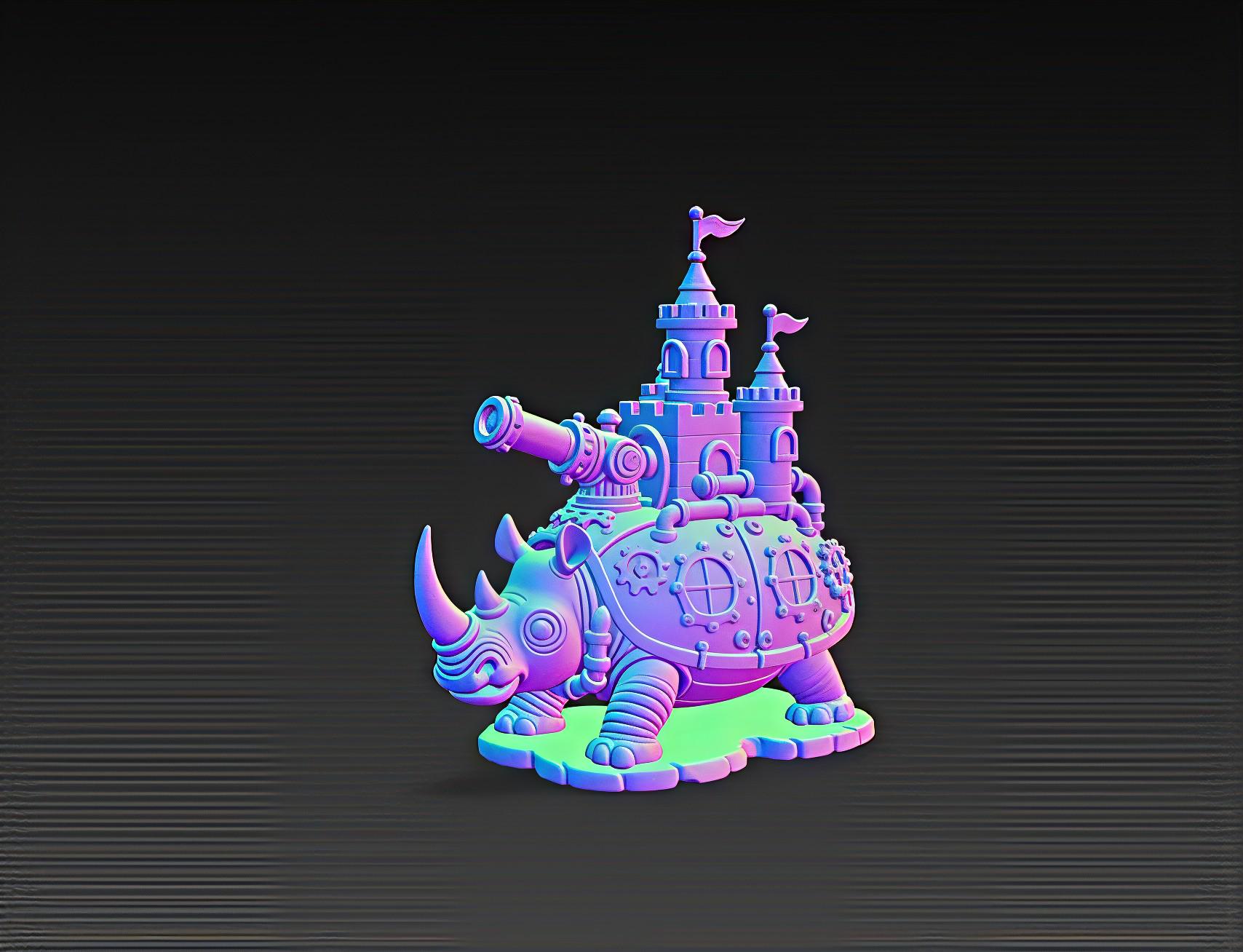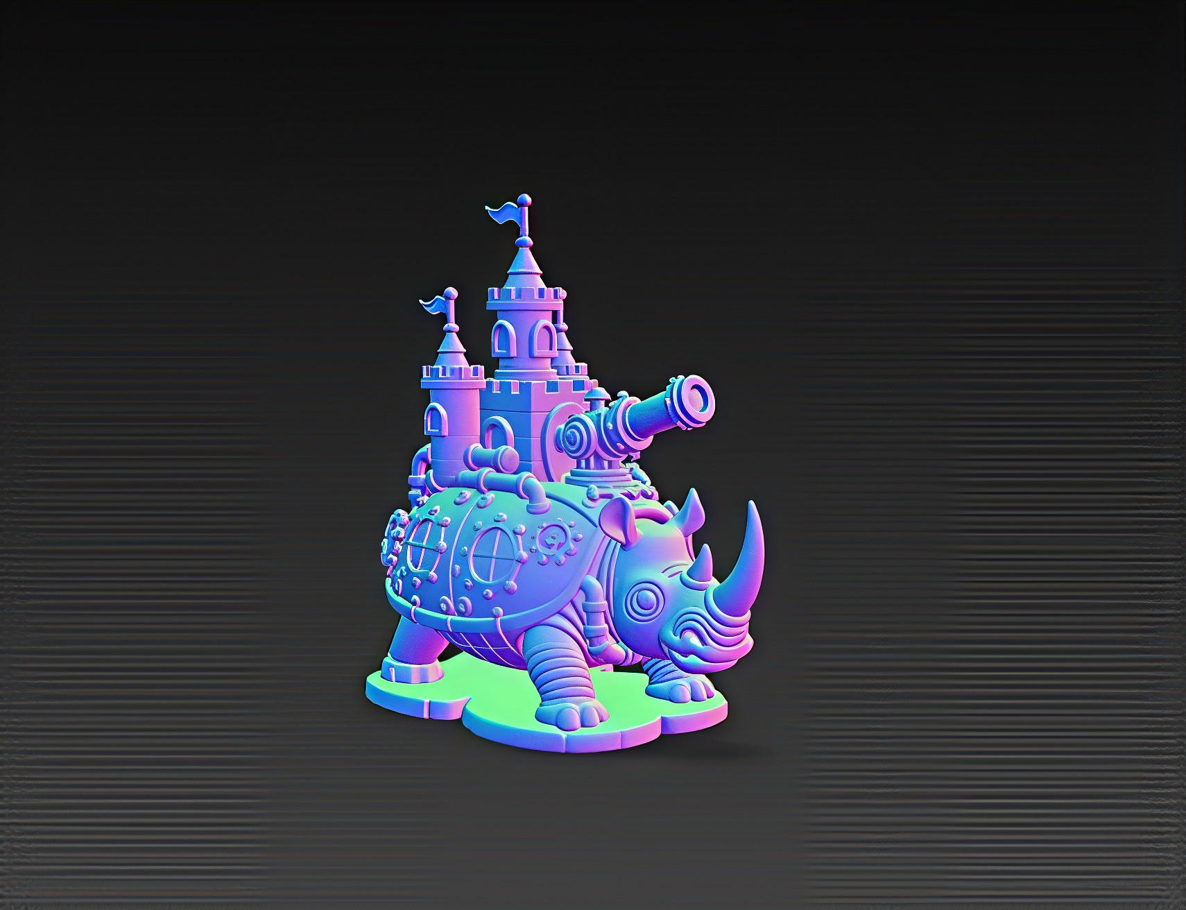 This steampunk rhino fortress STL blends fantasy and mechanical detail with its armored shell, castle towers, gears, and cannon. Designed for clean printing on resin or FDM machines, it makes a standout display piece for collectors and fantasy décor lovers. Digital download only.