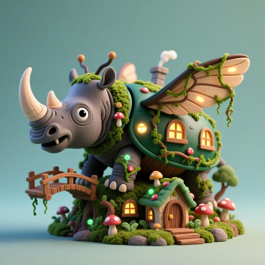 This whimsical winged rhino cottage STL blends fantasy creatures with a cozy fairytale home design. Illuminated windows, mushrooms, vines, and a miniature bridge create a charming 3D print perfect for resin or FDM machines. Ideal for collectors, décor lovers, and magical display setups. Digital file only.