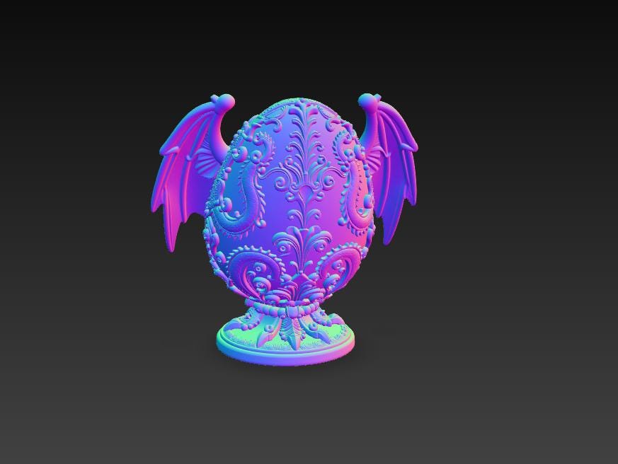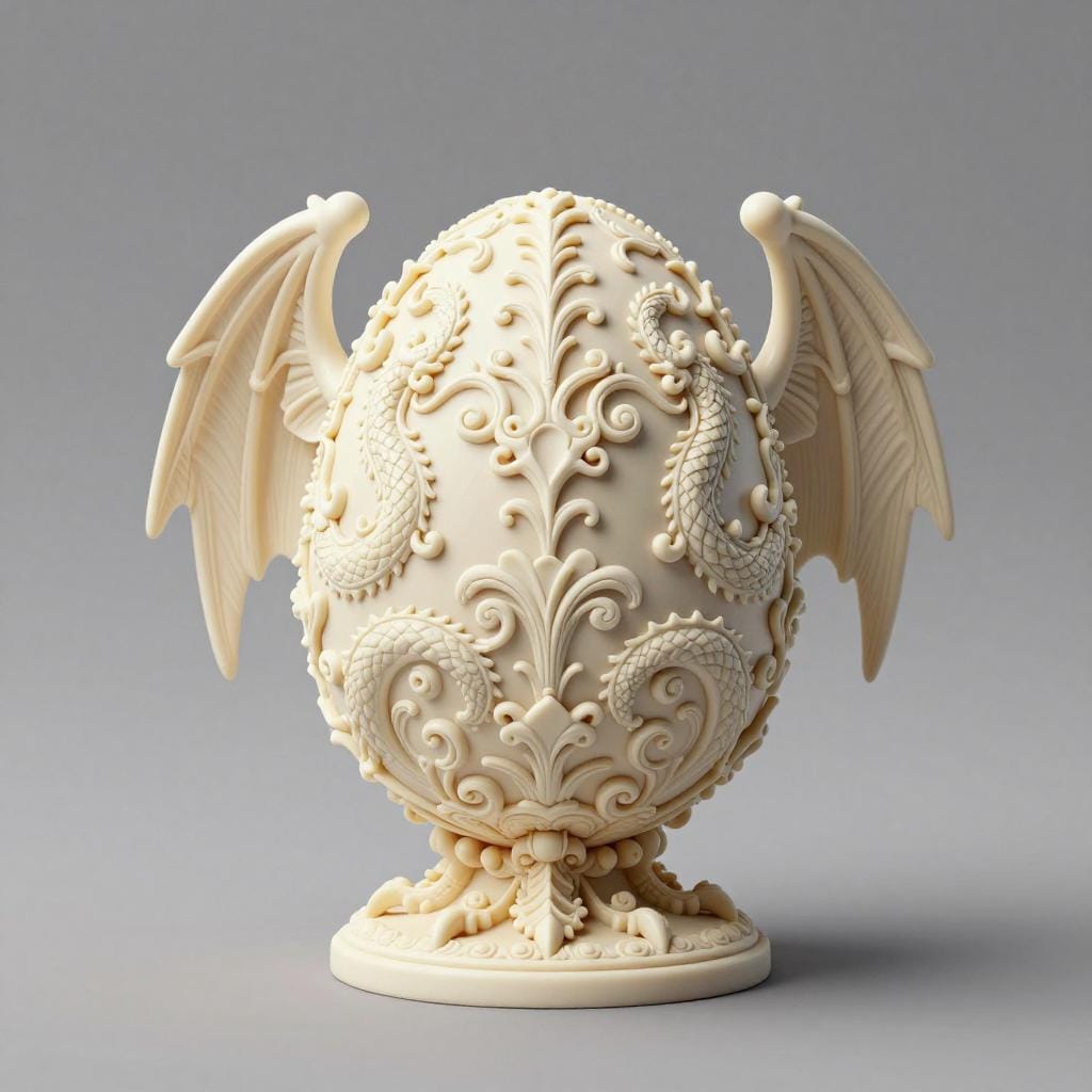 Digital STL download for an ultra-detailed winged dragon egg sculpture—perfect for fantasy shelf decor, gothic display, and collector tabletop centerpiece. Single-piece, one-color model for easy 3D printing.