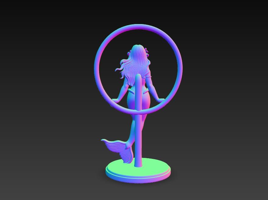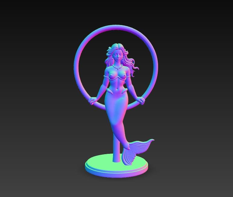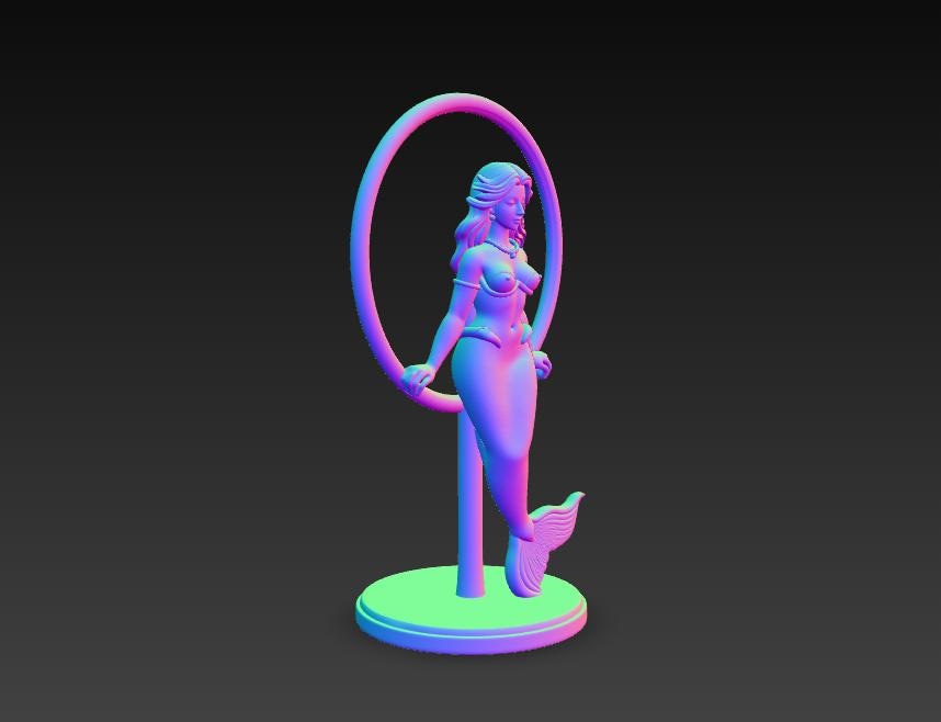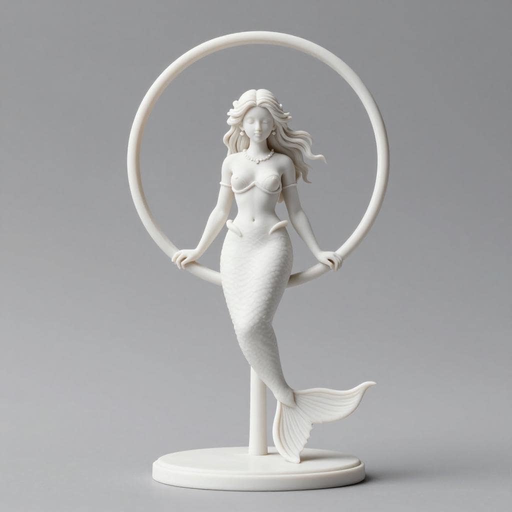 Digital STL download for a modern minimalist mermaid figurine with hoop frame—perfect for coastal home decor, ocean-themed shelf styling, and aesthetic desk display. Single-piece, one-color model for easy 3D printing.