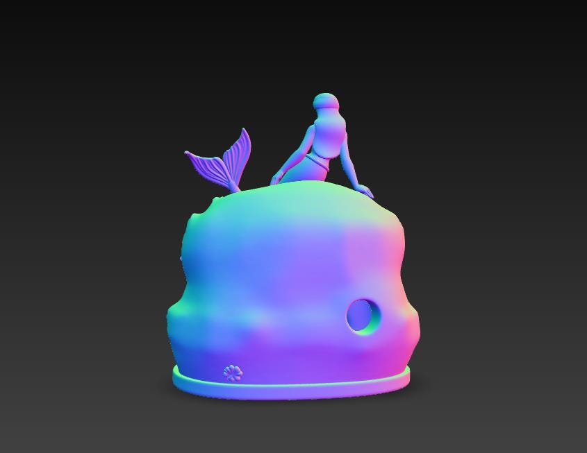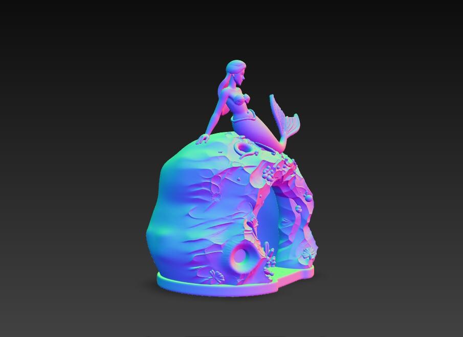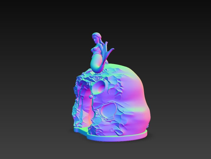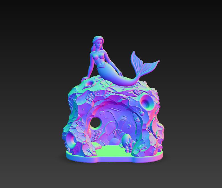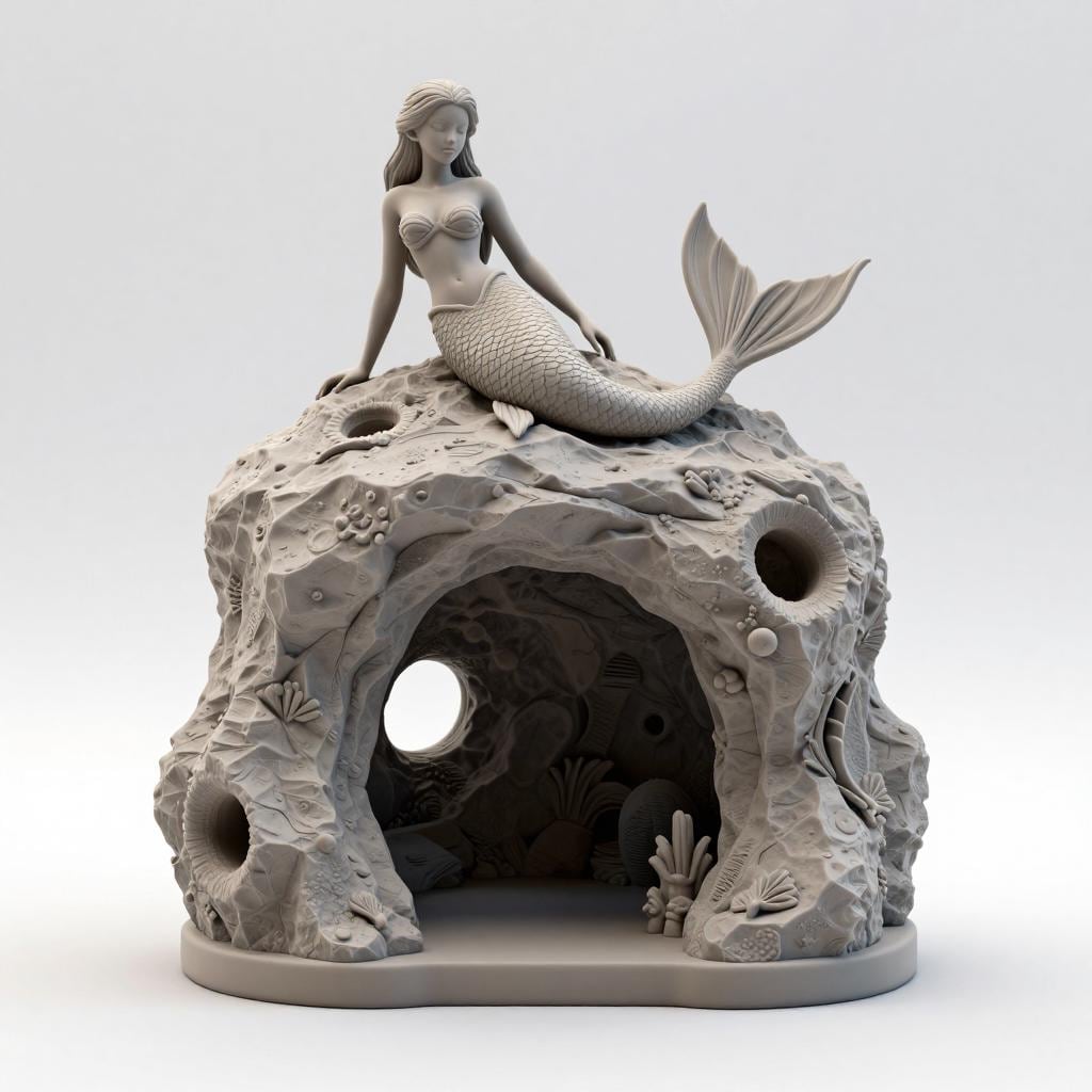 Digital STL download for a detailed mermaid grotto diorama—perfect for ocean-themed home decor, aquarium-style display, and fantasy shelf centerpiece. Single-piece, one-color model for easy 3D printing.