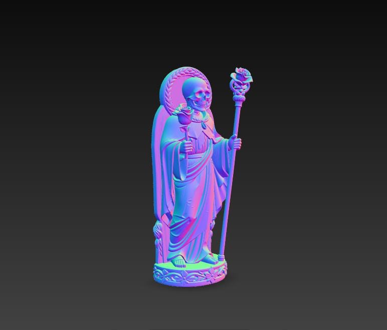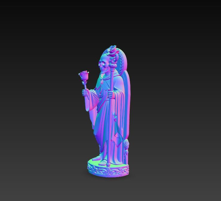Digital STL download for a highly detailed skull saint / reaper-style statue—perfect for gothic home decor, Halloween display, and dark fantasy collector shelf pieces. Single-piece, one-color model for easy 3D printing.