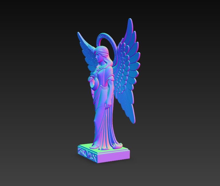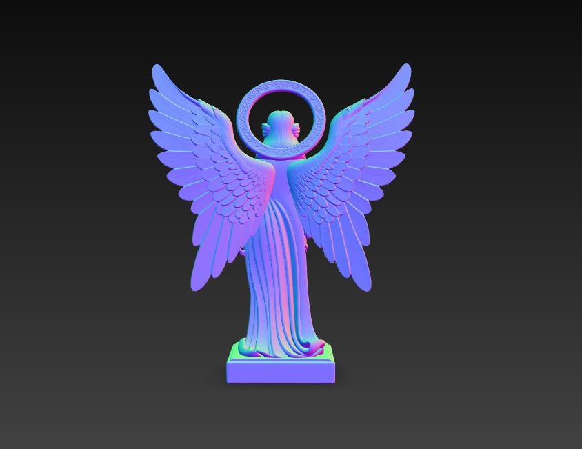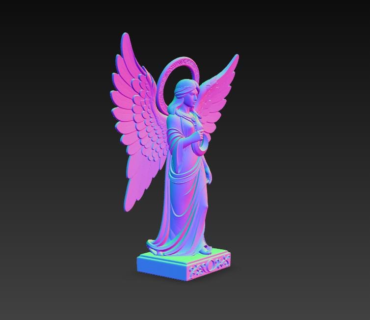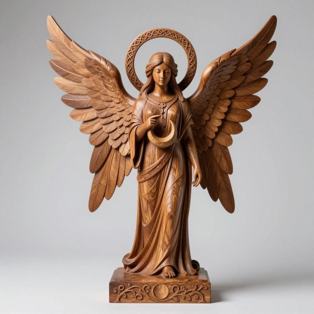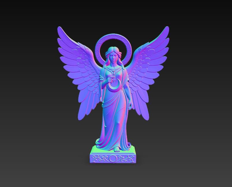 Digital STL download for a highly detailed winged angel guardian holding a crescent moon—perfect for spiritual home decor, memorial keepsakes, and elegant shelf display. Single-piece, one-color model for easy 3D printing.