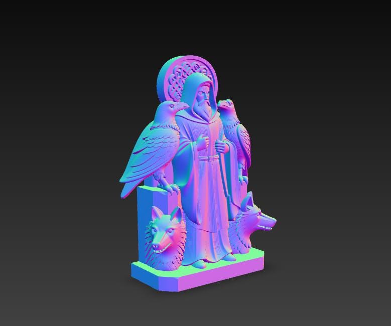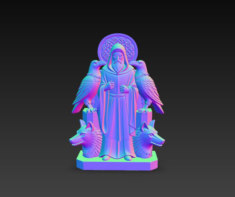 Bring serious Norse mythology energy to your shelf with this Odin-inspired guardian statue STL: a hooded wise figure framed by two ravens and two wolves in a bold, symmetrical composition. The sculpt is styled to look like hand-carved wood, so even a single-color print reads “premium” (and wood PLA looks insane on this).