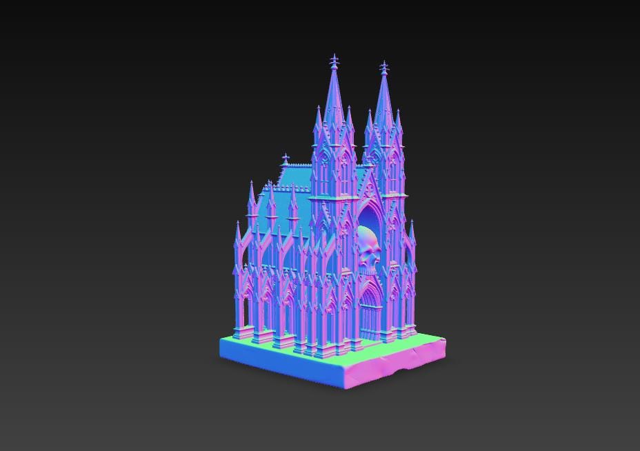 Highly detailed gothic cathedral STL file featuring dramatic gothic architecture and a skull centerpiece above the entrance. Perfect for dark fantasy decor, tabletop terrain, and collectors. The model is designed as a single-piece print and optimized for single-color 3D printing, making it easy to print on most FDM or resin 3D printers.
