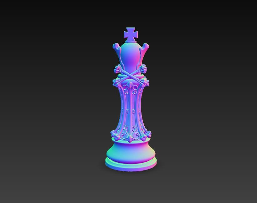 Highly detailed gothic skull king chess piece STL file designed for 3D printing. This model features dark fantasy styling with a skull crown and ornate gothic base, perfect for collectors, chess enthusiasts, and gothic decor lovers. The model is designed as a single-piece print and works perfectly as a single-color model, making it easy to print on most FDM or resin 3D printers.