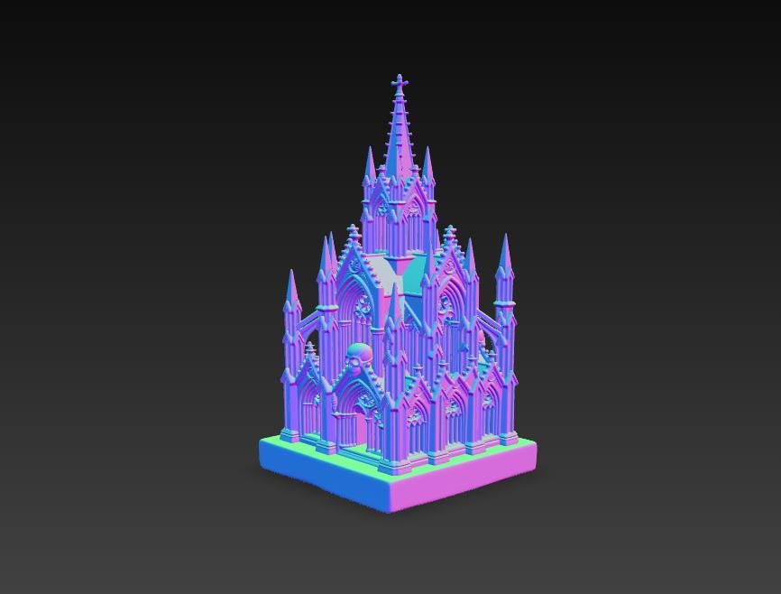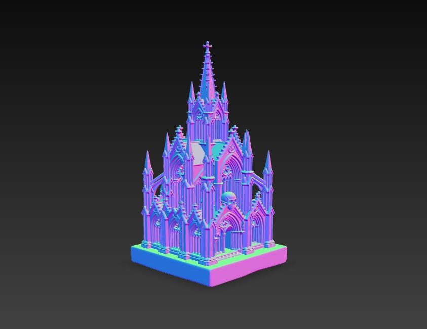 Highly detailed gothic cathedral STL file featuring intricate gothic architecture and skull elements, perfect for dark fantasy decor, tabletop scenery, and collectors. The model is designed as a single-piece print and optimized for single-color 3D printing, making it easy to print on most FDM or resin 3D printers.