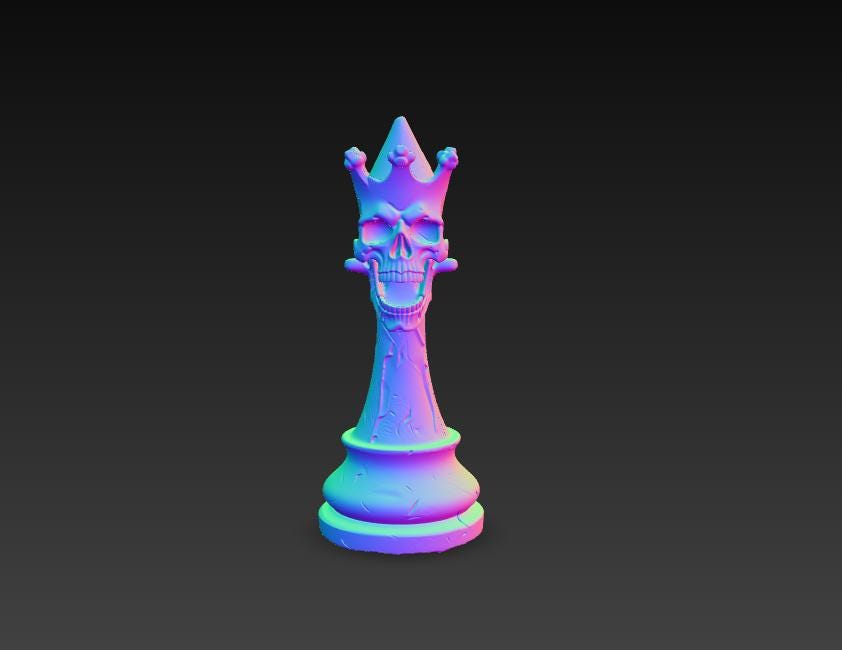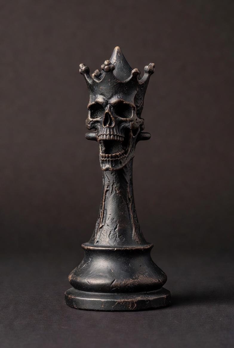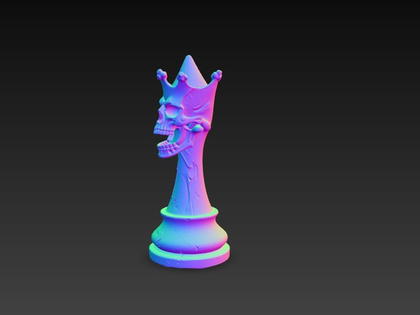 Highly detailed skull king chess piece STL file featuring a crowned skull with dark gothic styling. Perfect for fantasy chess sets, gothic decor, and collectors. The model is designed as a single-piece print and optimized for single-color 3D printing, making it easy to print on most FDM or resin 3D printers.