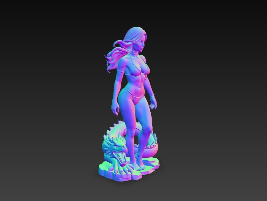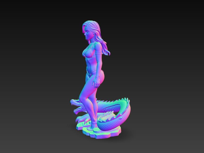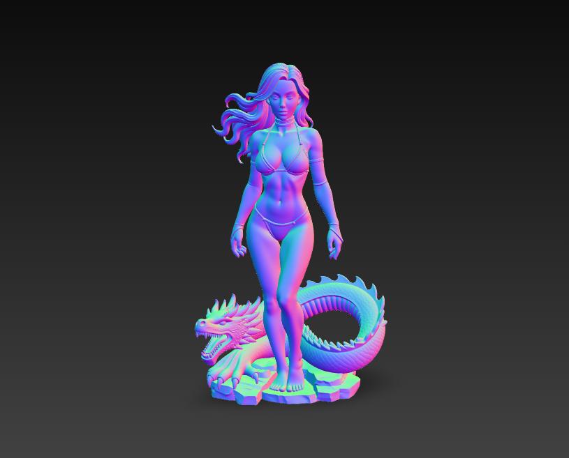 Highly detailed fantasy woman statue STL file featuring an elegant female character standing with a dragon creature base. Perfect for fantasy collectors, tabletop displays, and decorative figures. The model is designed as a single-piece print and optimized for single-color 3D printing, making it easy to print on most FDM or resin 3D printers.