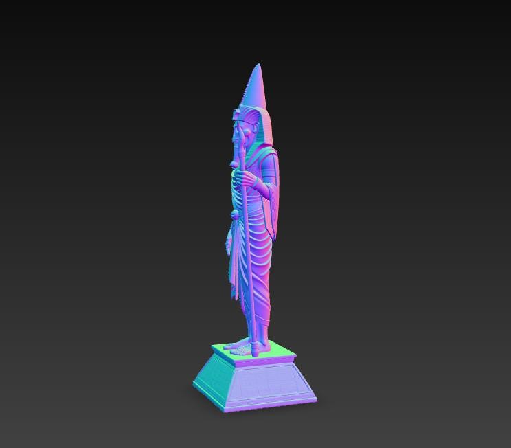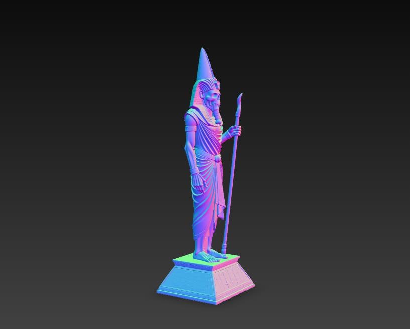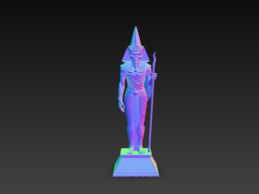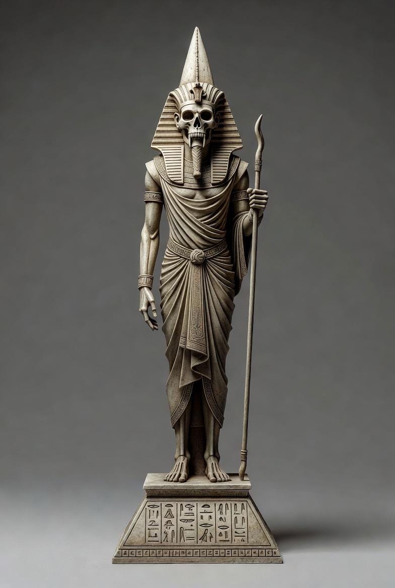 Highly detailed Anubis-inspired skull statue STL file featuring an ancient Egyptian style figure with skeletal face, ceremonial staff, and hieroglyph base. Perfect for mythology collectors, fantasy decor, and unique display pieces. The model is designed as a single-piece print and optimized for single-color 3D printing, making it easy to print on most FDM or resin 3D printers.