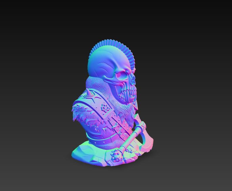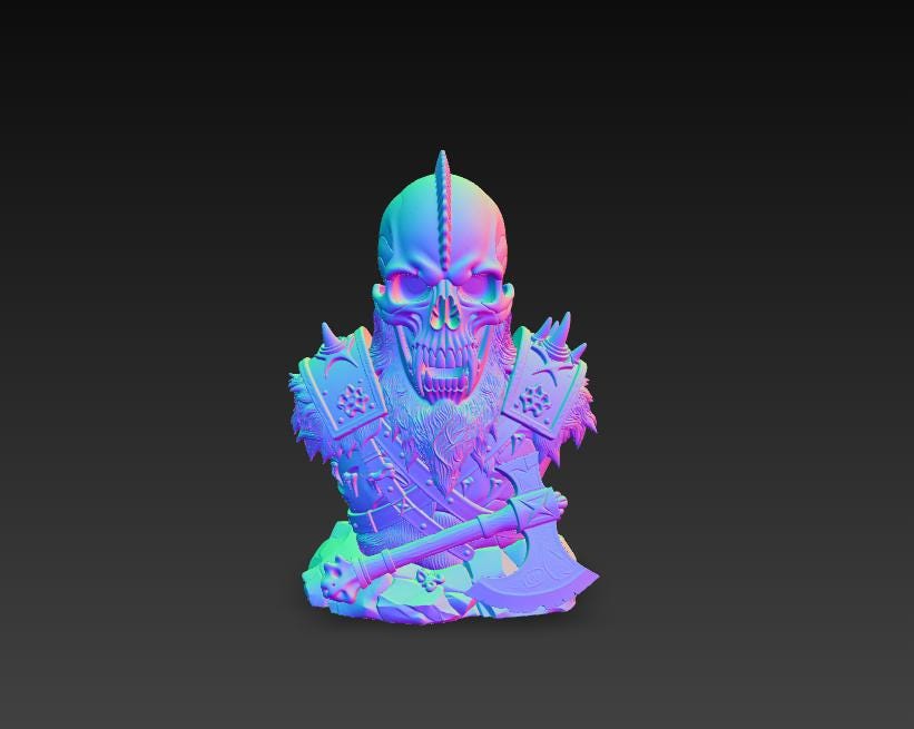 Highly detailed skeleton viking warrior bust STL file featuring a fierce skull warrior with armor, beard, and battle axe. Perfect for dark fantasy collectors, tabletop decor, and unique display pieces. The model is designed as a single-piece print and optimized for single-color 3D printing, making it easy to print on most FDM or resin 3D printers.
