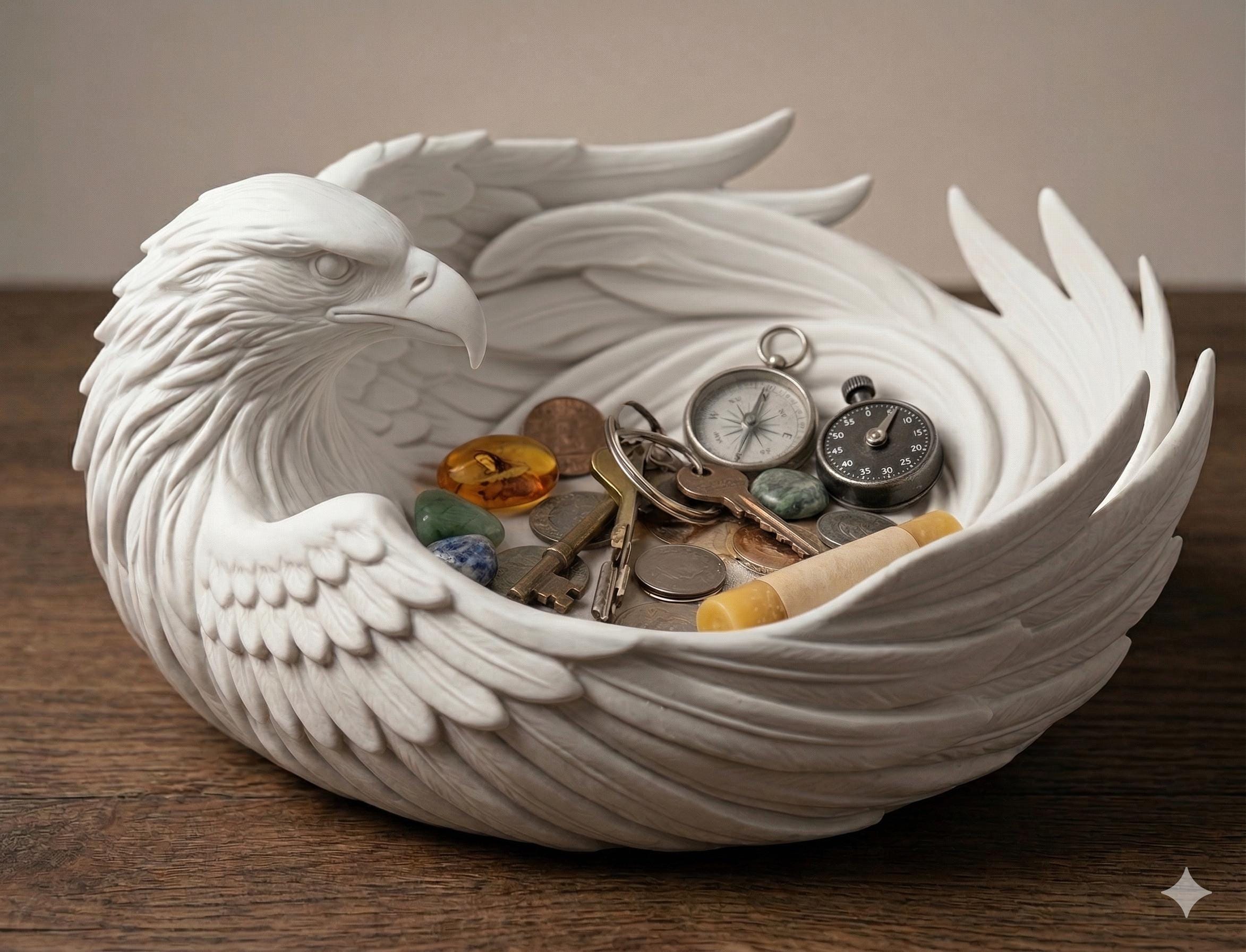 Bring power and elegance into your space with this majestic eagle-shaped organizer bowl. Designed with detailed wings wrapping around, this piece is not just decor — it's a functional statement.
