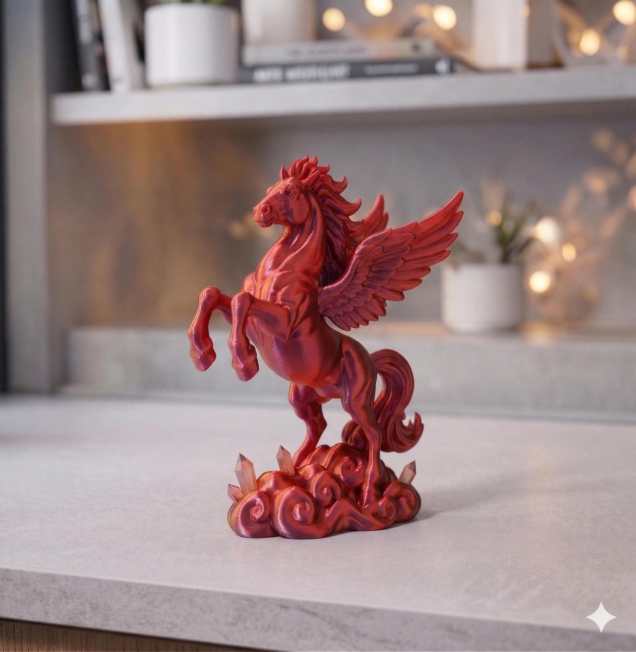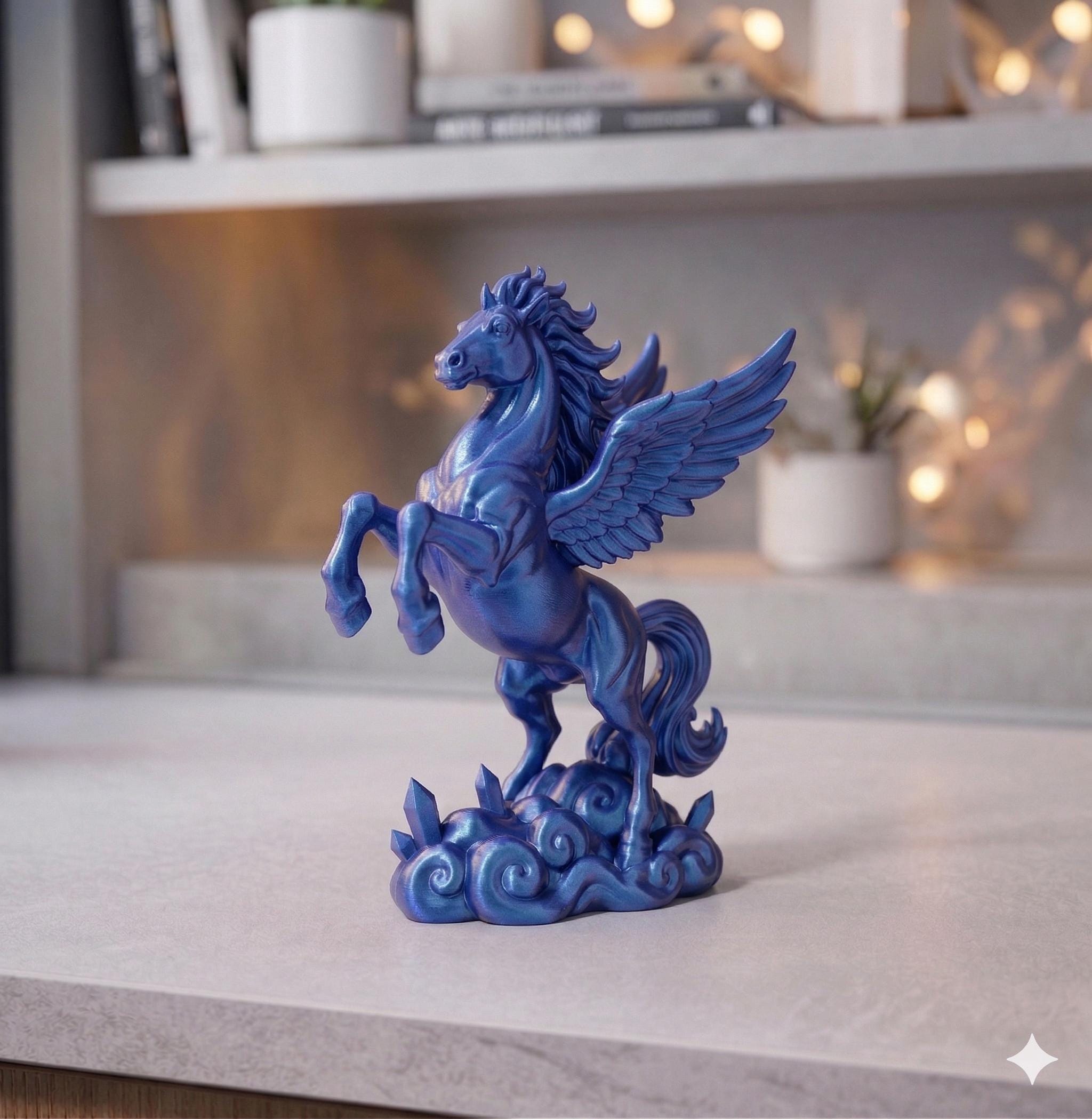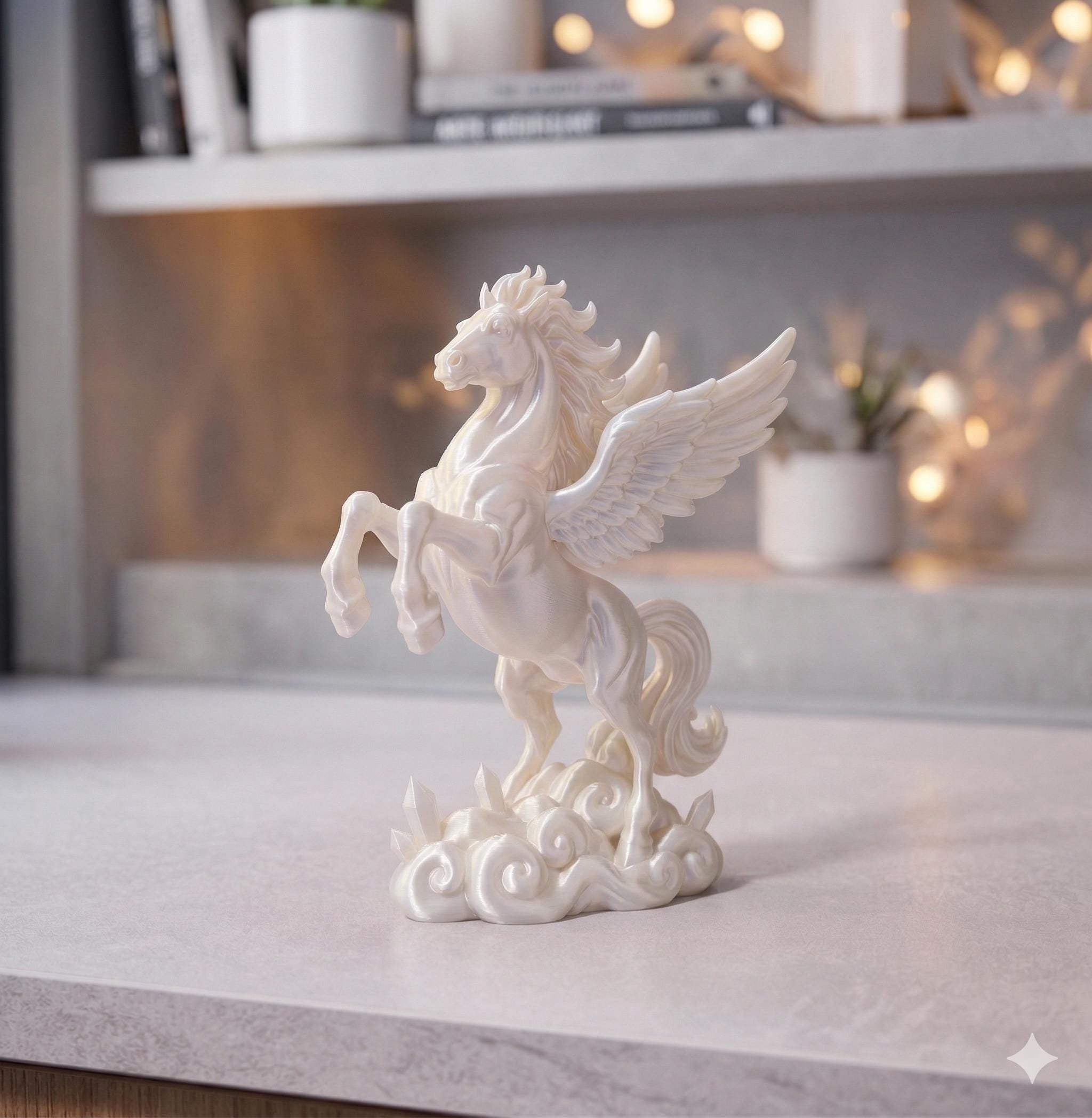 This unique figurine is 3D printed with high-quality PLA filament, capturing fine details from the flowing mane to the delicate wings. Designed as a minimalist yet eye-catching decor piece, it fits perfectly on desks, shelves, or as a thoughtful gift.