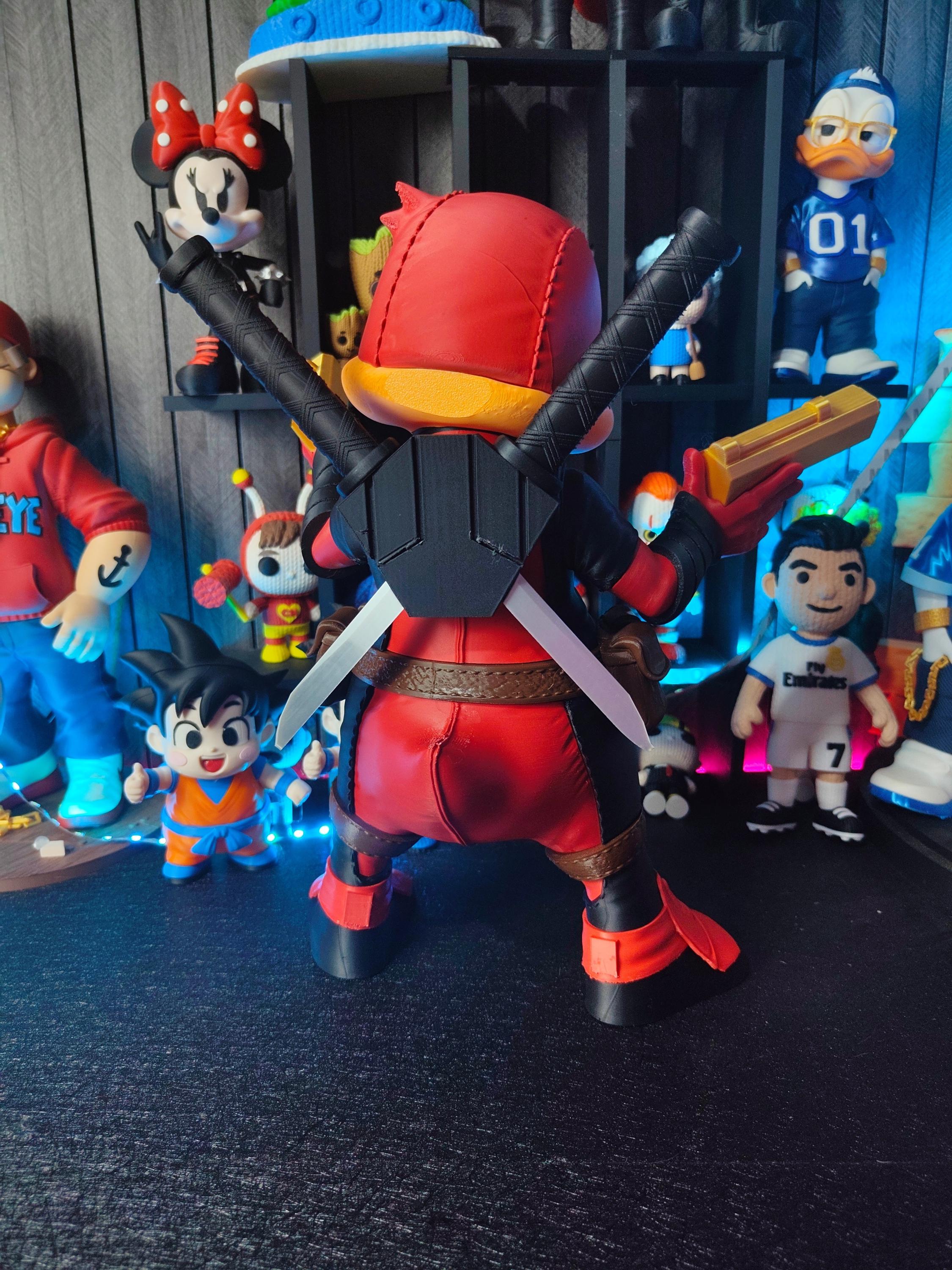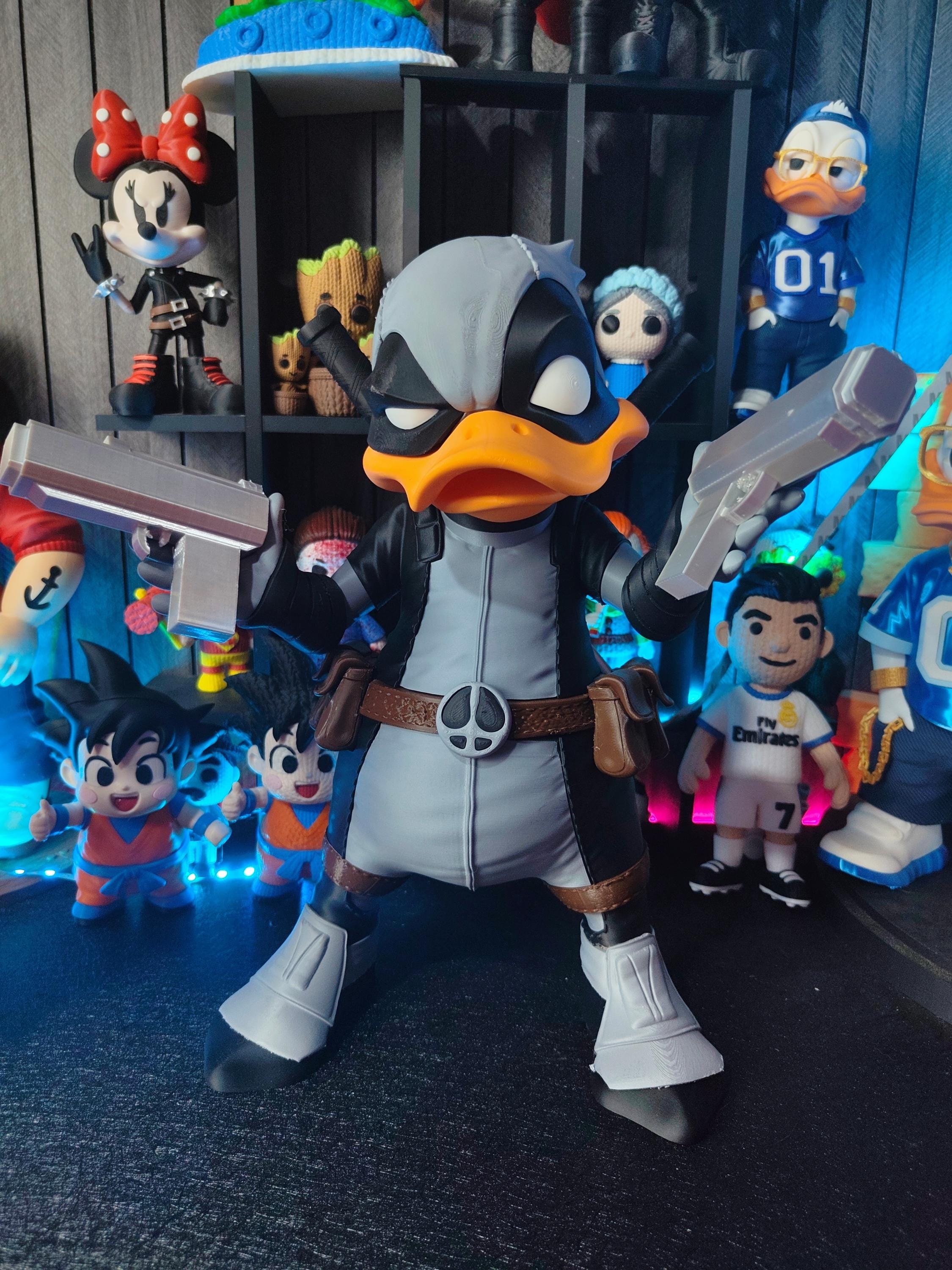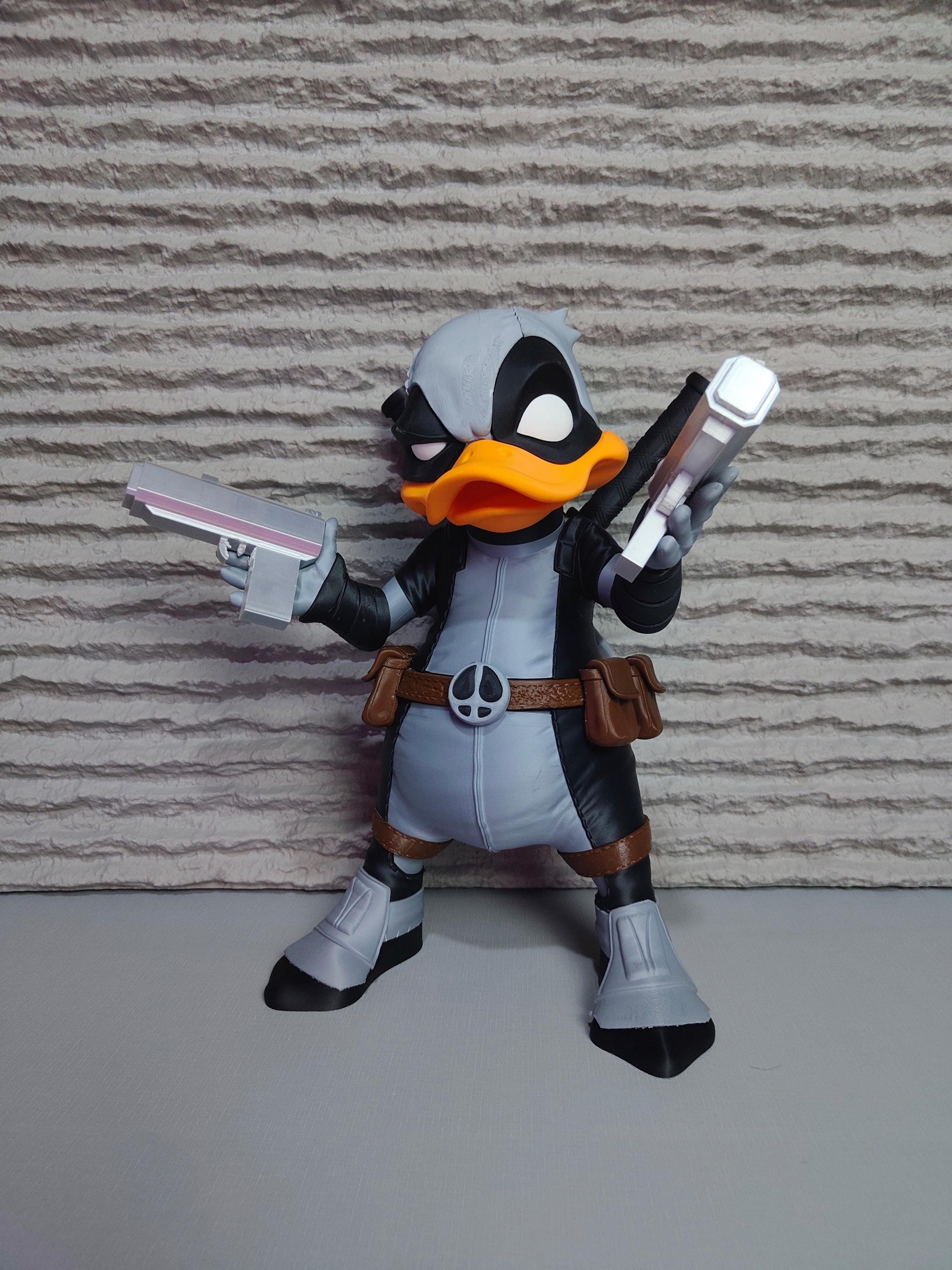 Add a bold and humorous touch to your collection with this tactical duck mercenary figure. Inspired by comic-style masked heroes, this unique 3D printed statue blends a playful duck character with a strong action-themed design.
