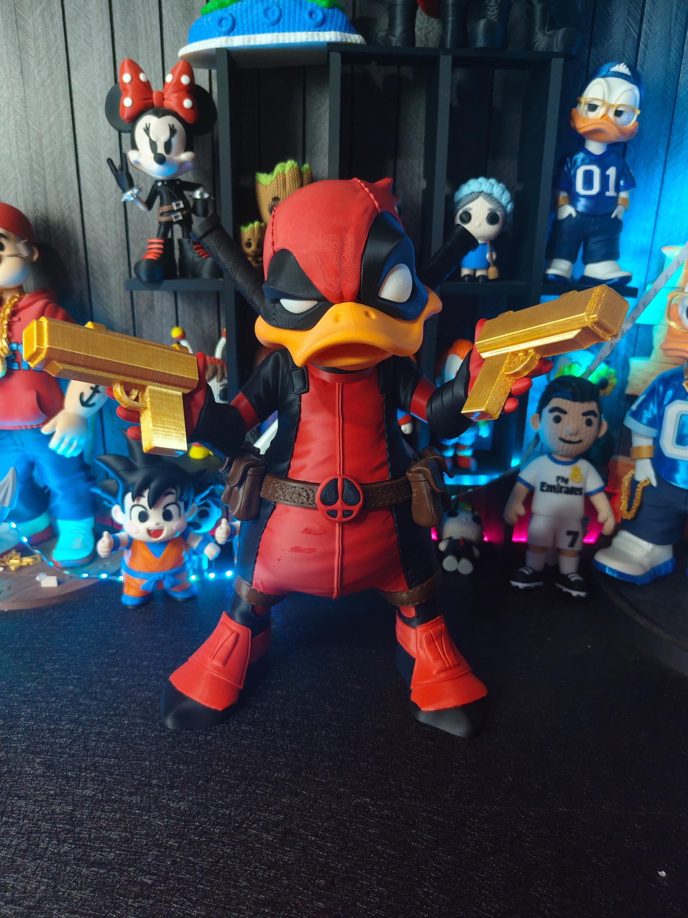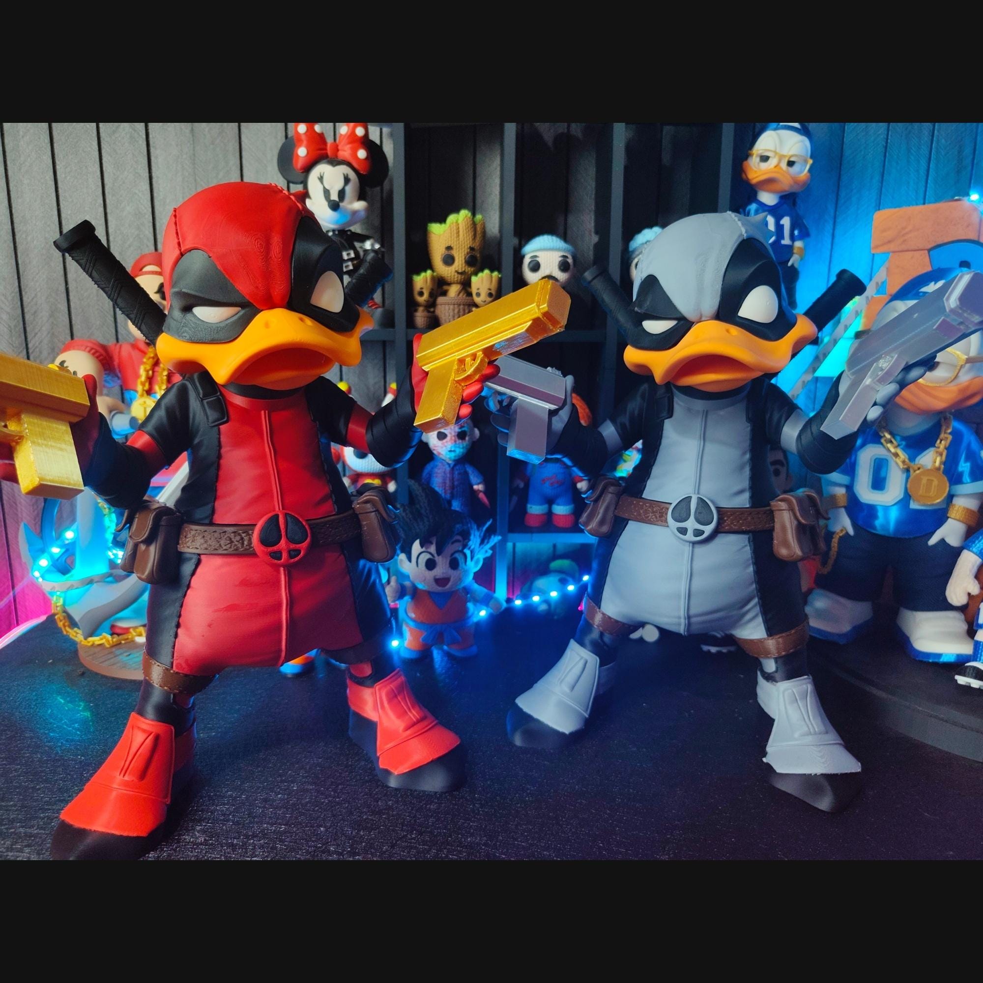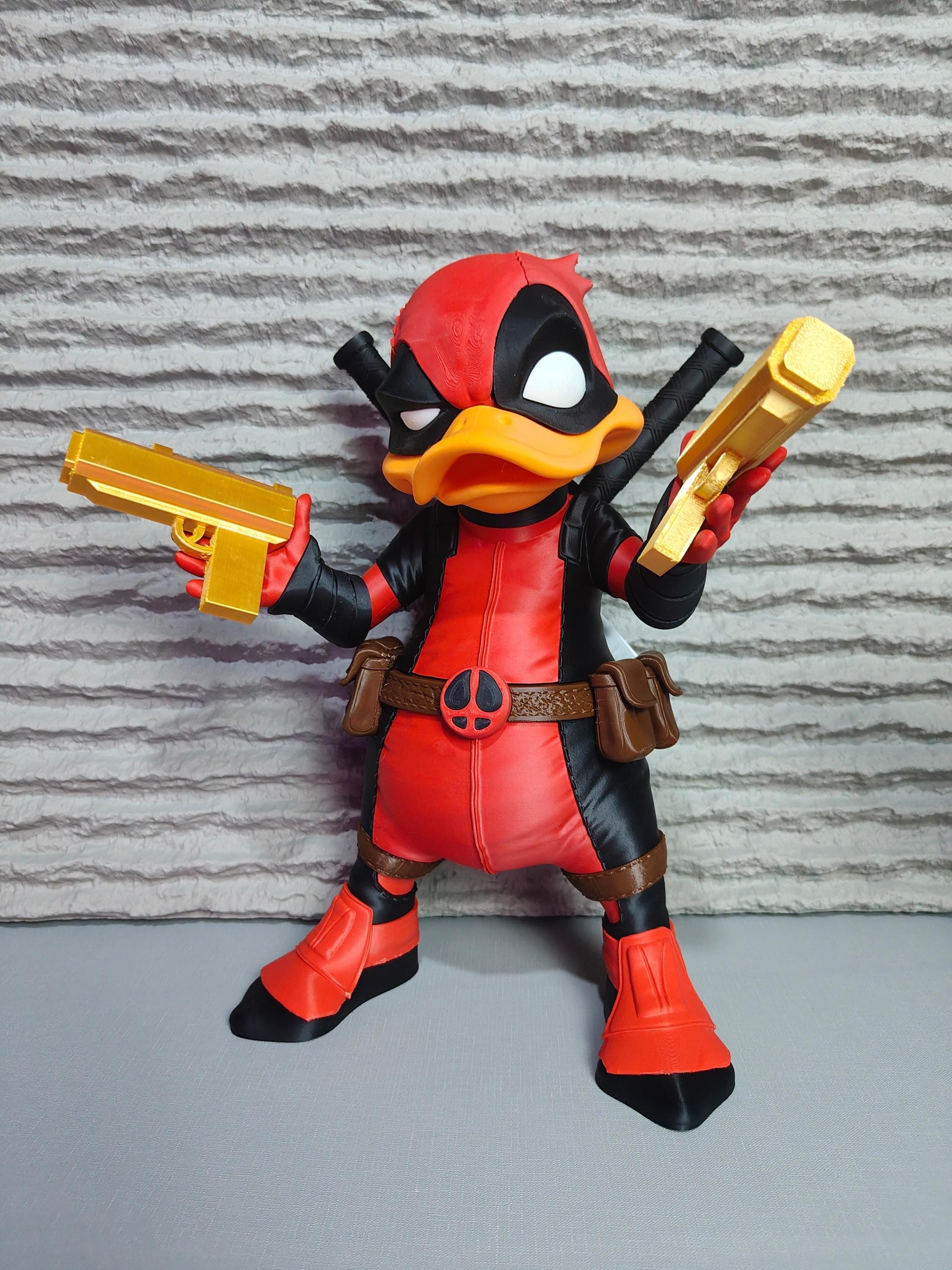 Add a bold and humorous touch to your collection with this tactical duck mercenary figure. Inspired by comic-style masked heroes, this unique 3D printed statue blends a playful duck character with a strong action-themed design.