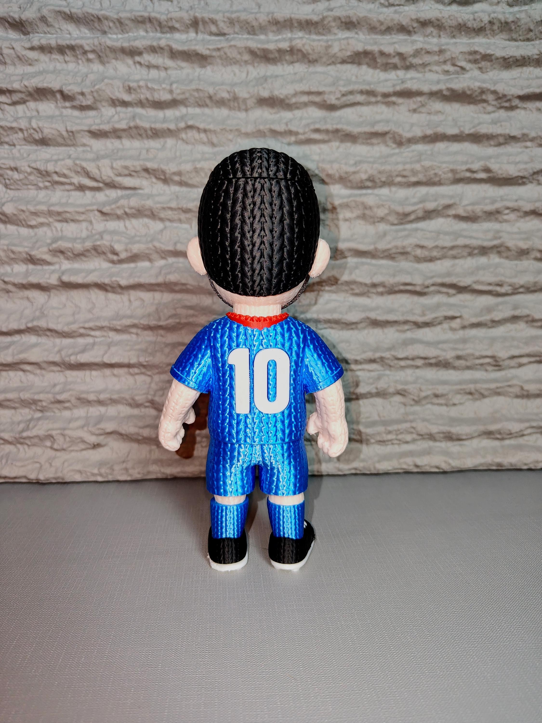 Celebrate one of football’s greatest playmakers with this knitted-style soccer player figure. Designed with a unique textured look and iconic number 10 jersey style, this 3D printed statue captures the spirit of a legendary football icon.