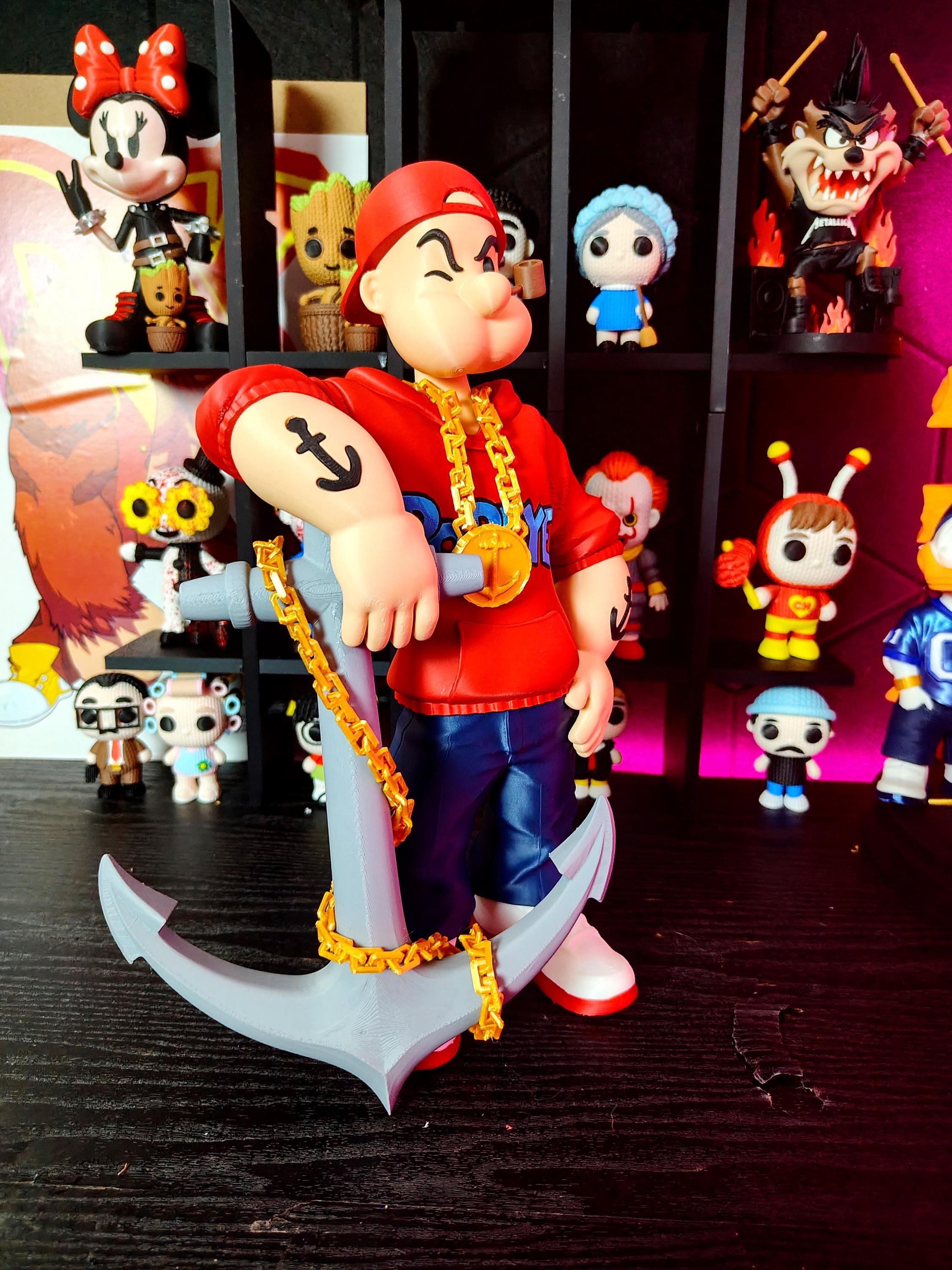 Add attitude and street style to your collection with this urban sailor character figure. Designed with a bold hip hop aesthetic, this 3D printed statue features a confident pose, oversized anchor accessory, and modern streetwear outfit.