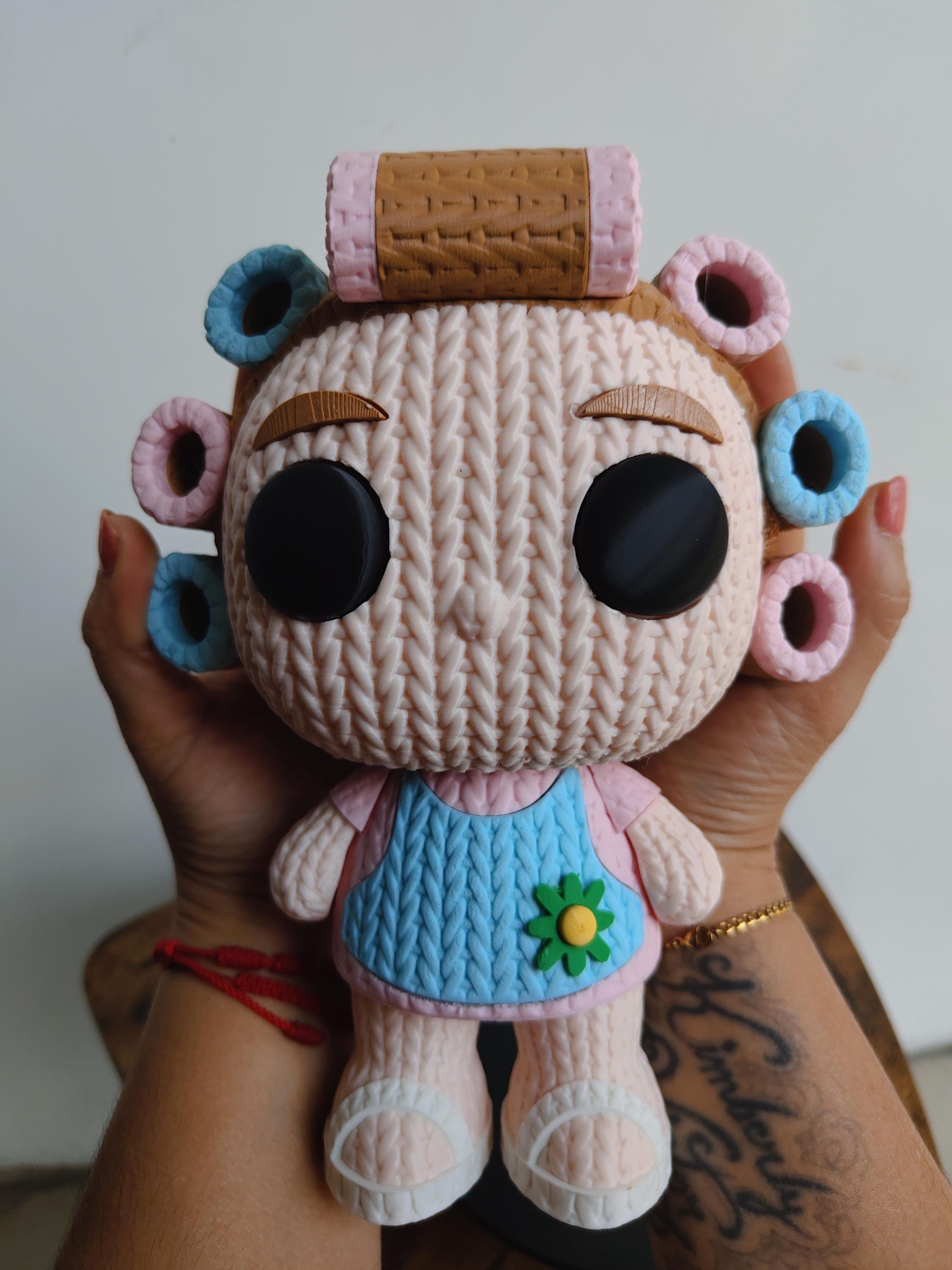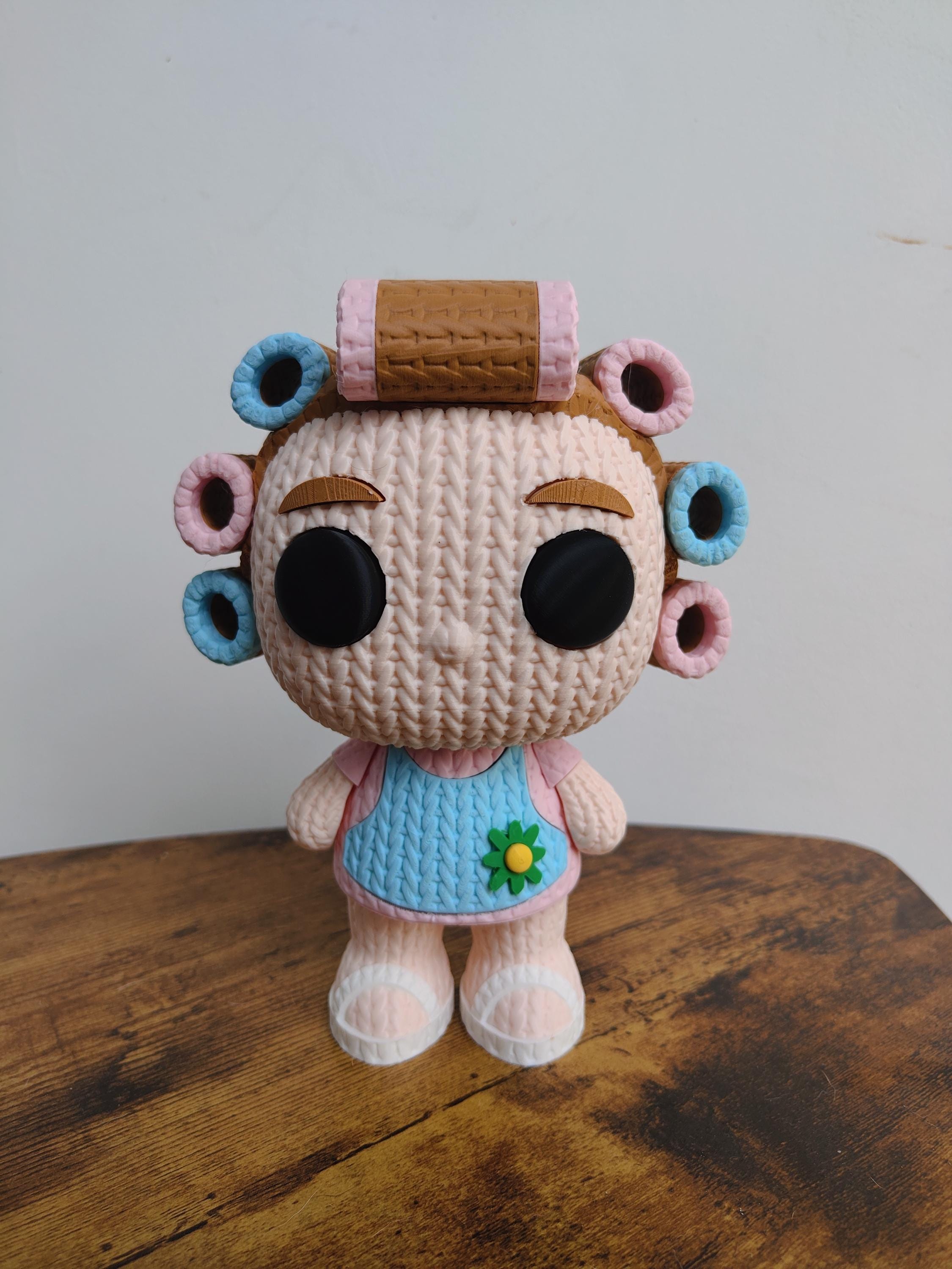 Bring warmth and personality into your space with this cute granny doll figure. Designed with a soft knitted texture and detailed hair rollers, this 3D printed figurine creates a cozy and charming atmosphere.