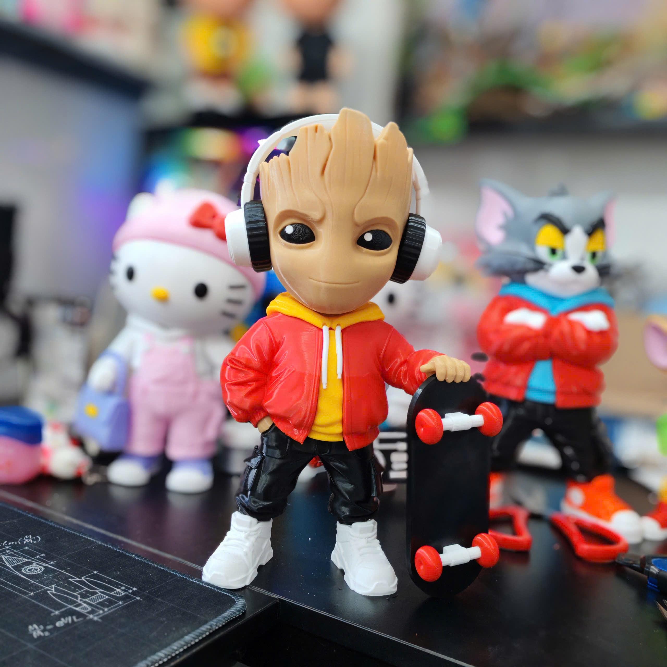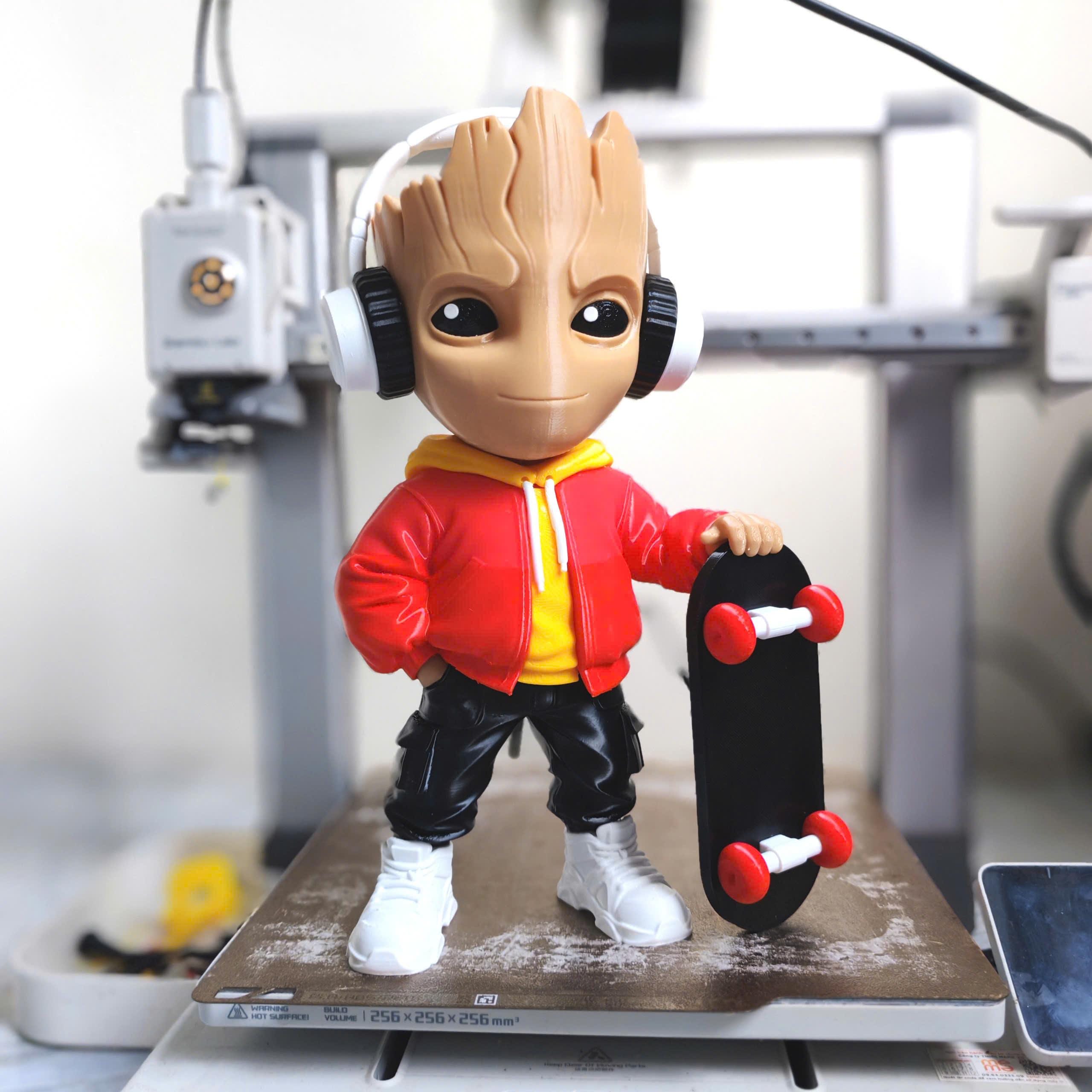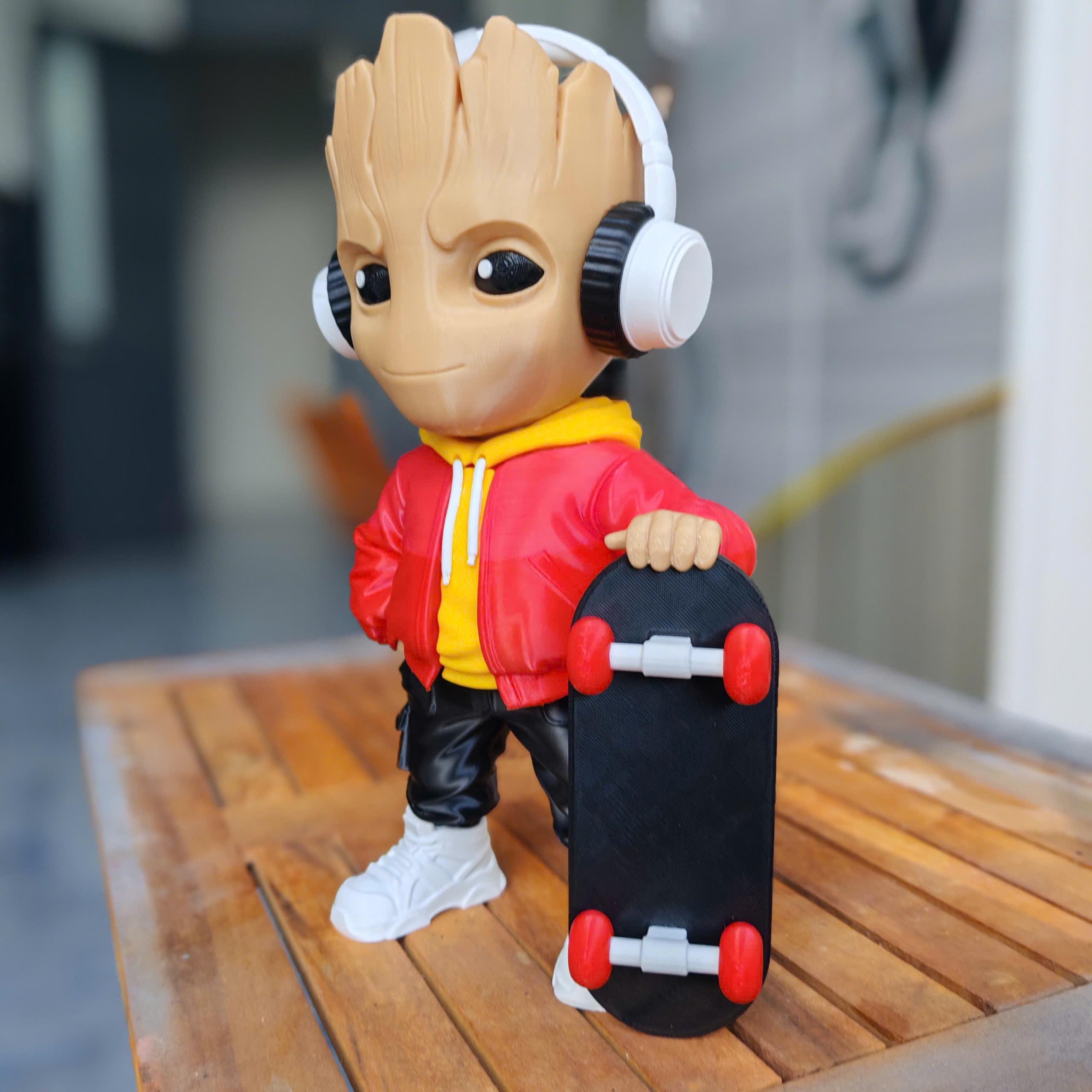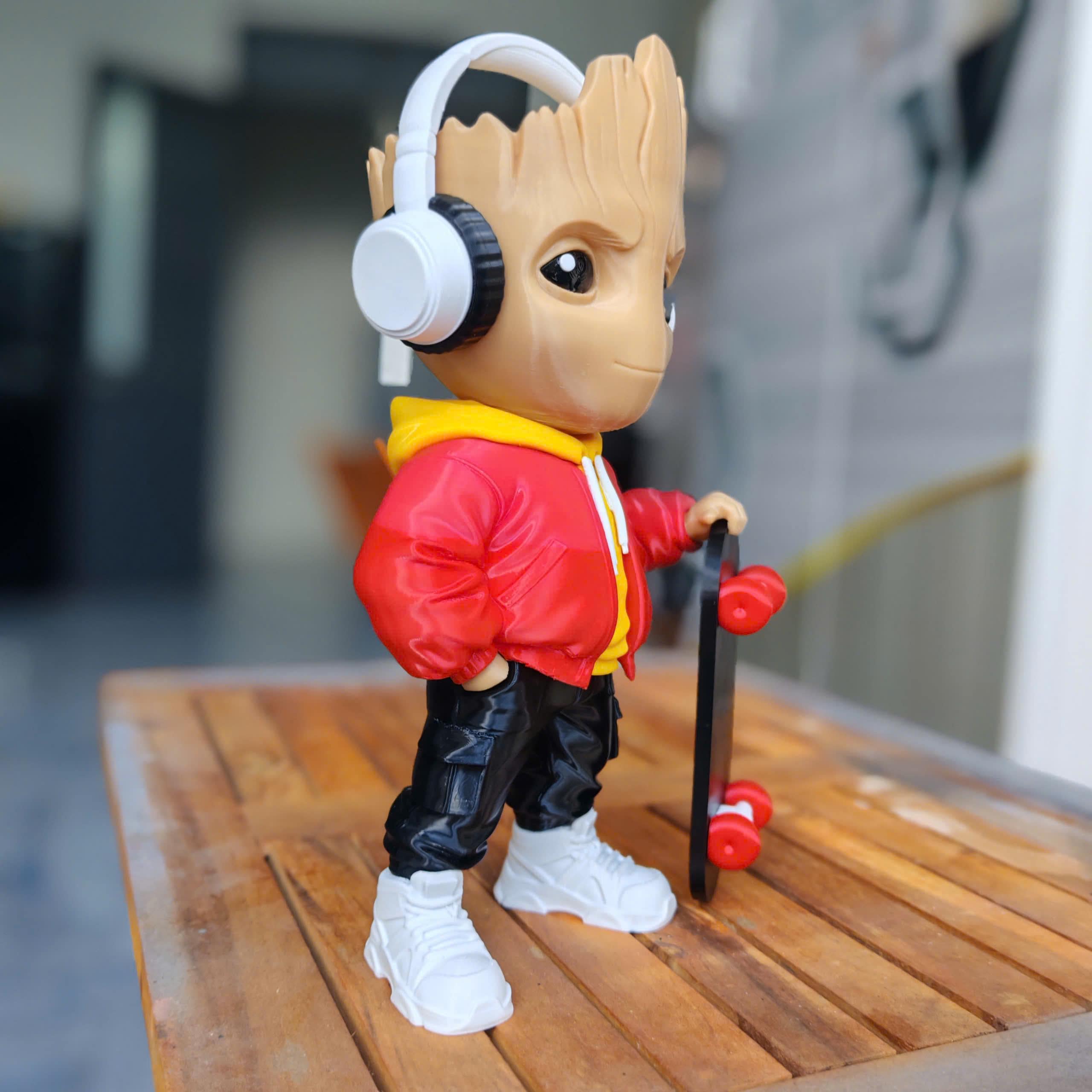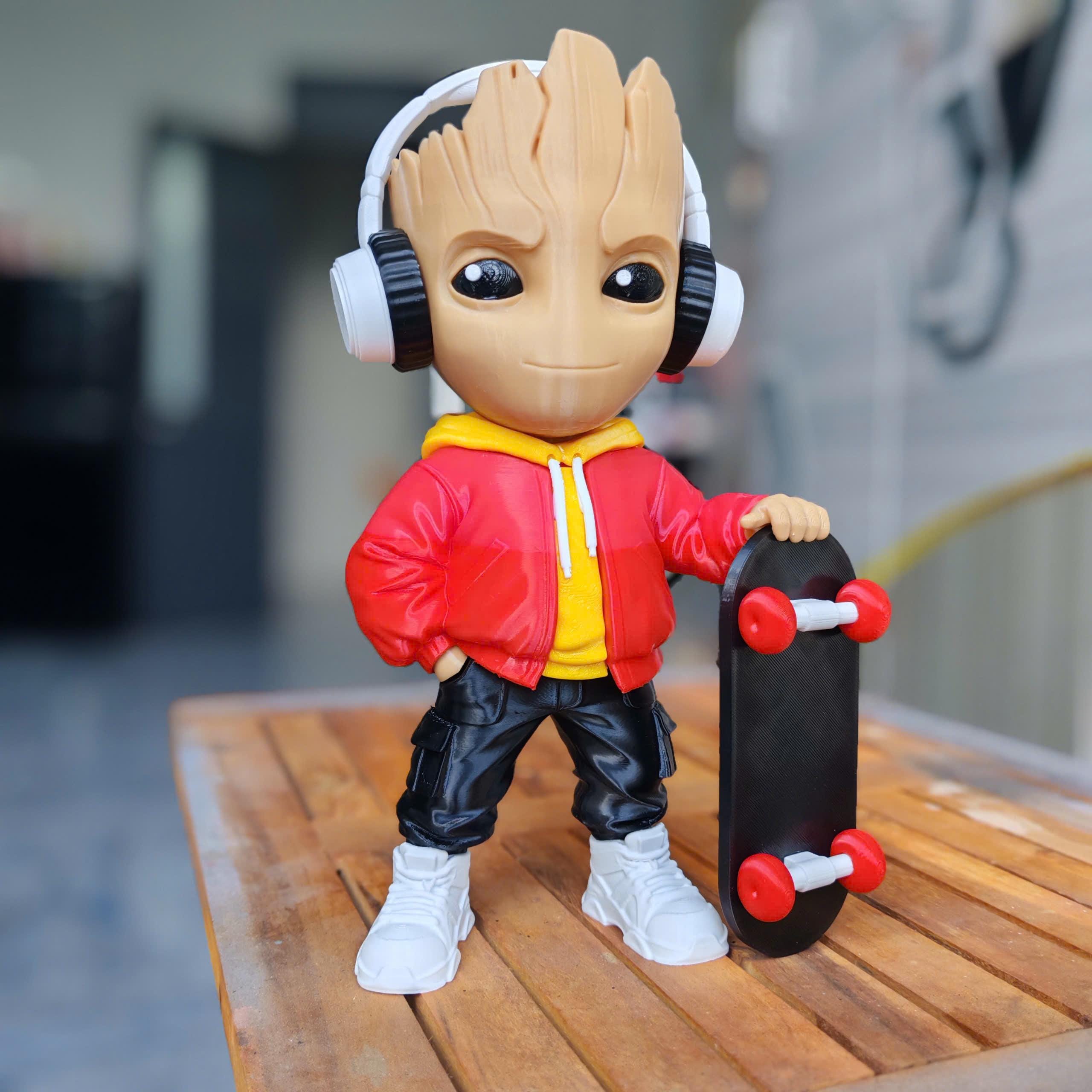 Designed with a modern hoodie, headphones, and skateboard, this 3D printed collectible blends nature with street culture for a unique and eye-catching look.